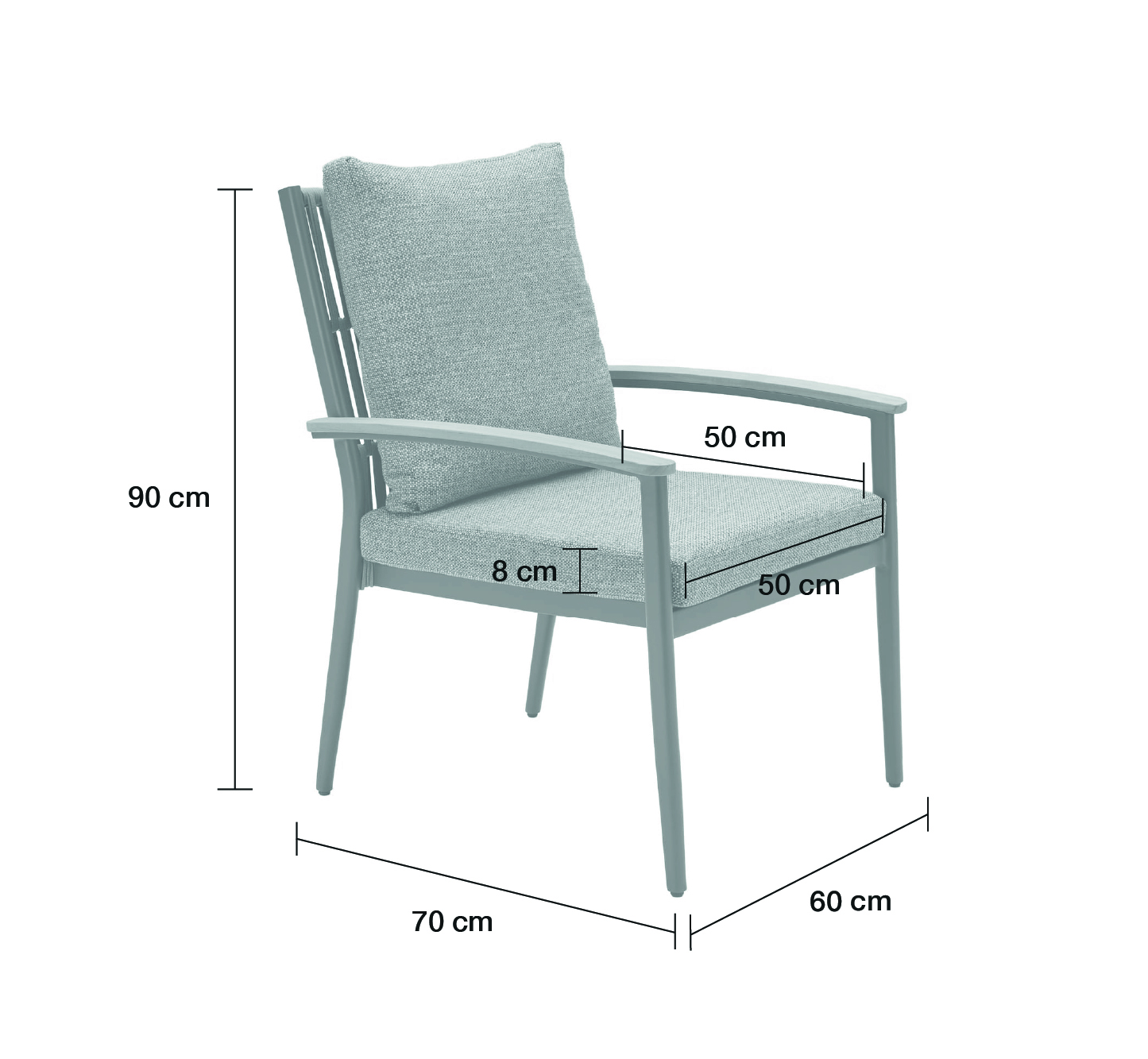 Ein schöner Blickfang ist die Rückenlehne aus grauem Rope: Sie wirkt leicht und modern, bietet aber trotzdem angenehmen Halt. Dazu kommen die Armlehnen aus Teakholz – warm in der Optik, hochwertig im Gefühl und einfach richtig angenehm beim Sitzen. Für extra Bequemlichkeit sorgt das Sitzkissen mit Bezug aus braunem Webstoff. So sitzen Sie auch über längere Zeit entspannt – ideal für lange Dinner-Abende oder gemütliche Kaffeerunden draußen.