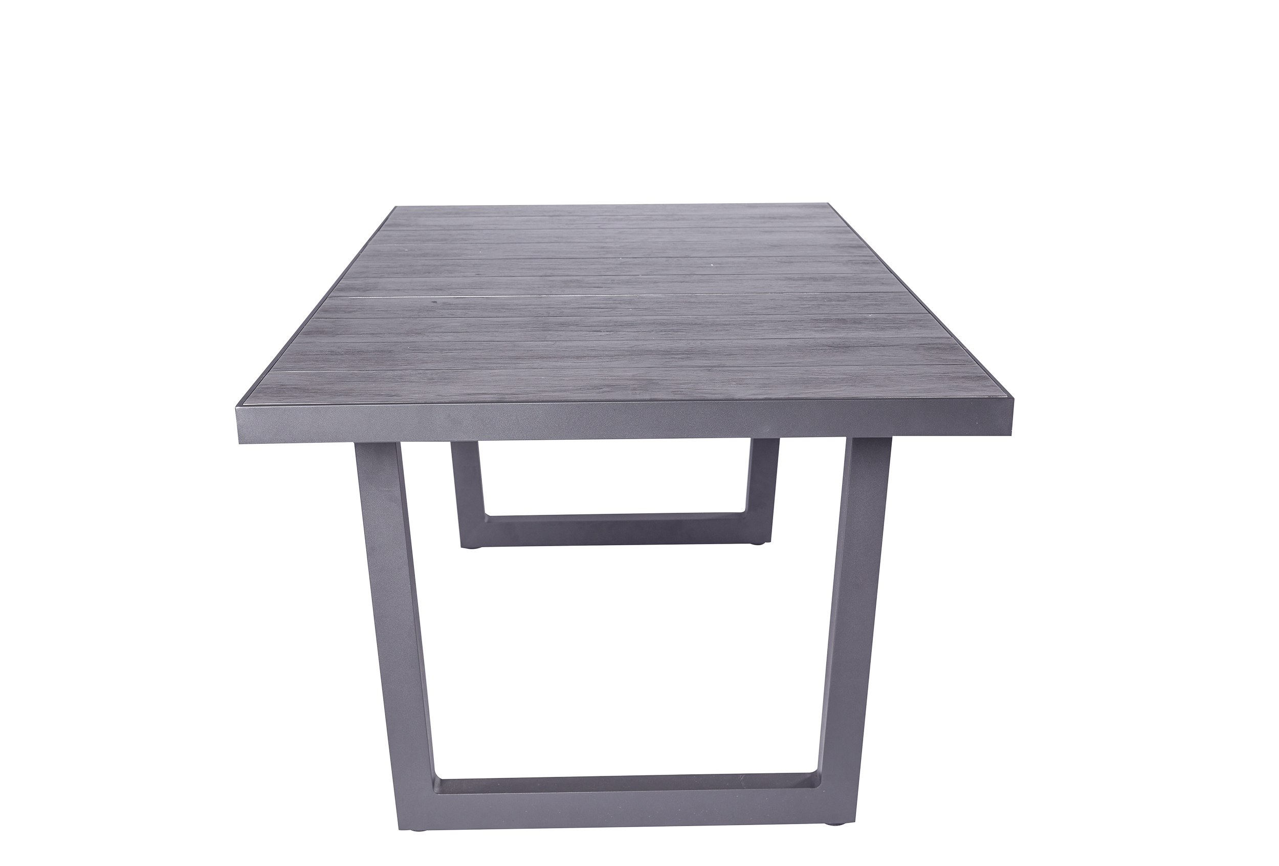 Die Möbelserie »Bailado« vereint gekonnt Stil und Funktionalität und stellt einen echten Blickfang für Ihre Terrasse oder Ihren Wintergarten dar. Der neu entwickelte Esstisch überzeugt mit einer Platte aus Keramik in Holzoptik, die in den eleganten Farbtönen Grau oder Braun erhältlich ist. Dank der Kratz- und Stoßfestigkeit bleibt die Tischplatte auch bei intensiver Nutzung in einwandfreiem Zustand – ideal für den Outdoor-Bereich. Der Tischrahmen aus Aluminium sorgt für Leichtigkeit und ist gleichzeitig äußerst widerstandsfähig gegen Rost, was die Langlebigkeit des Möbelstücks garantiert. Besonders flexibel zeigt sich das Design durch die Wahl zwischen einem A-Fuß oder V-Fuß-Rahmen, beide in einem modernen Dunkelgrau gehalten. So lässt sich der Tisch perfekt an den Stil Ihrer Außenbereichsgestaltung anpassen und wird garantiert zum Highlight Ihrer Terrasse oder Ihres Wintergartens. Mit »Bailado« entscheiden Sie sich für Möbel, die sowohl durch ihre ästhetische Wirkung als auch durch ihre Widerstandsfähigkeit und Langlebigkeit überzeugen – ein wahrer Luxus für Ihr Zuhause im Freien.