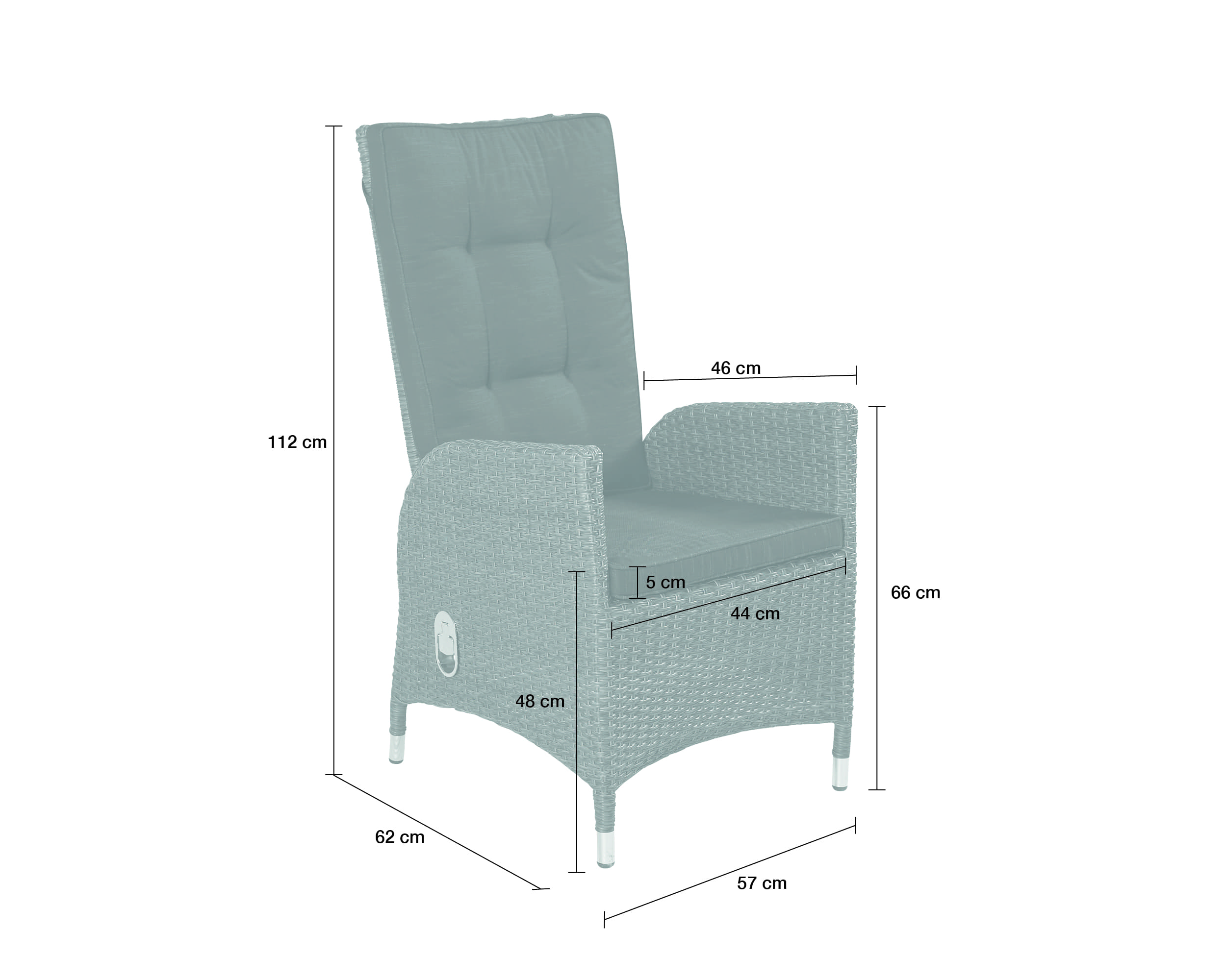 Dieser Positionsstuhl aus der beliebten Möbelserie Barcelona ist mehr als nur ein Gartenstuhl. Dank stufenlos verstellbarer Rückenlehne bietet Ihnen der mit Polyrattan-Geflecht bezogene Sessel aus Aluminium höchsten Sitzkomfort. Der Hochlehner ist leicht, unempfindlich gegen Rost und langlebig. Die abgebildeten Sitzauflagen liegen den Diningsesseln bei.