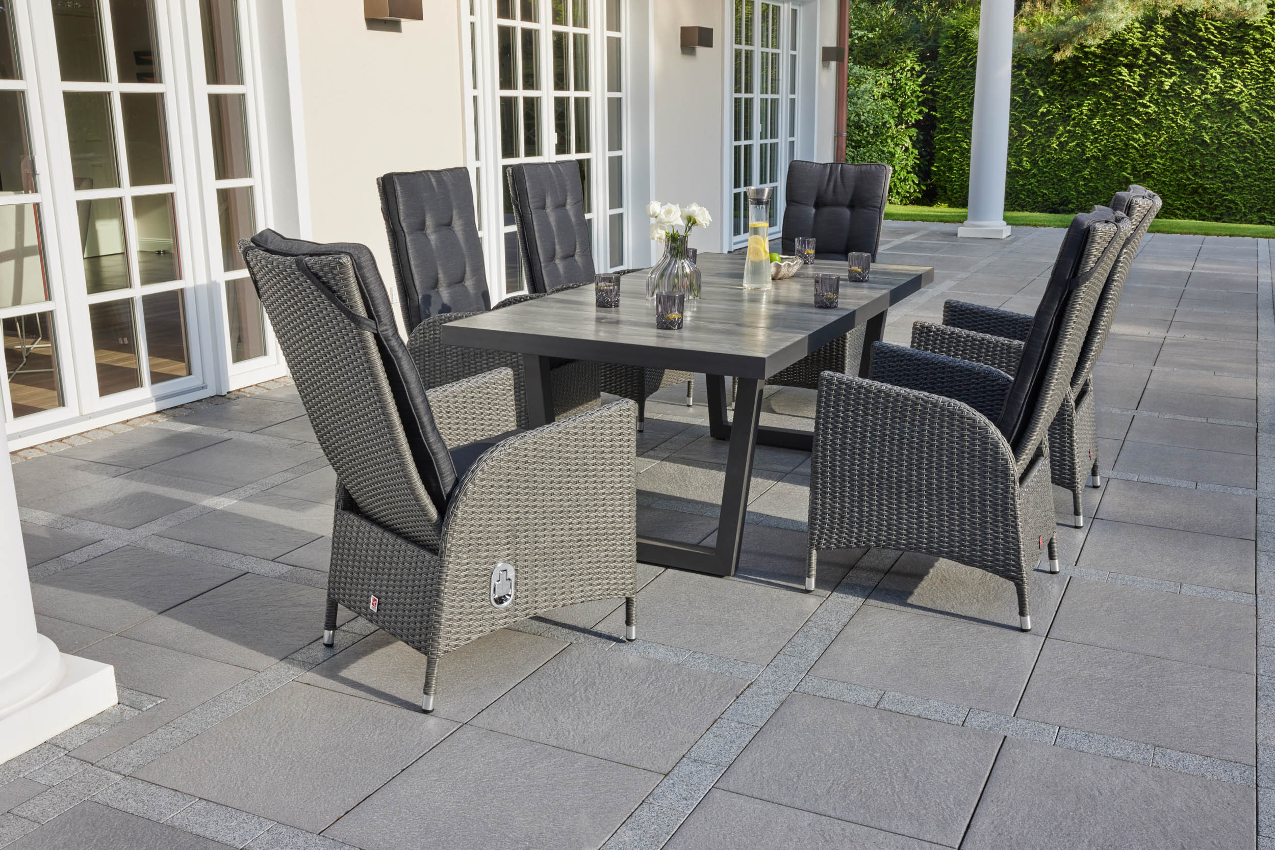 LC Garden »Barcelona« Gartenset 7tlg. anthrazit Esstisch 200x100cm Aluminium/Keramik grau + 6 Gartenstühle Sitzgruppe