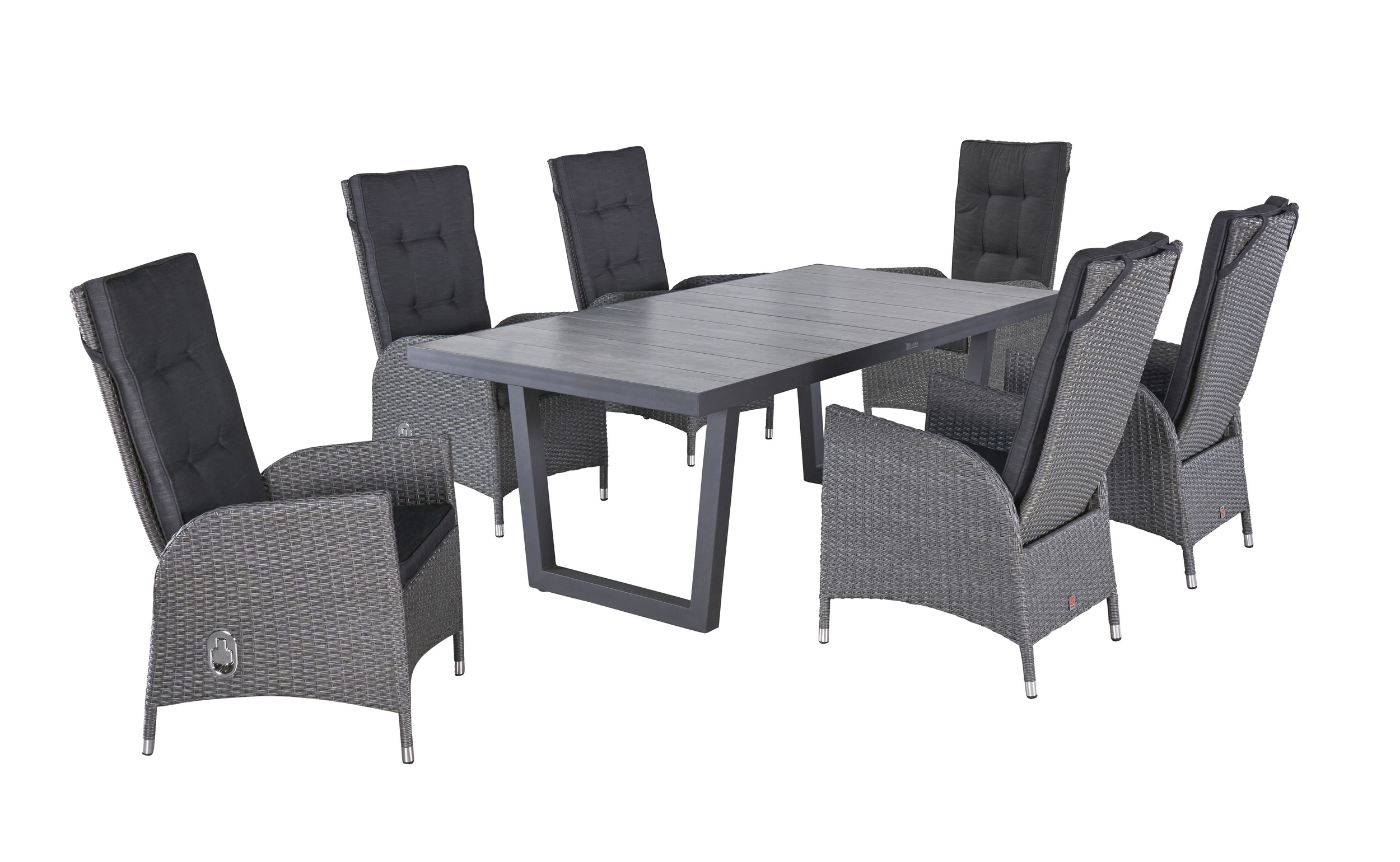 Sitzgruppe Barcelona bestehend aus 200x100cm Esstisch (Art. 209034) + 6 x Barcelona Positionsstuhl (Art. 148203)