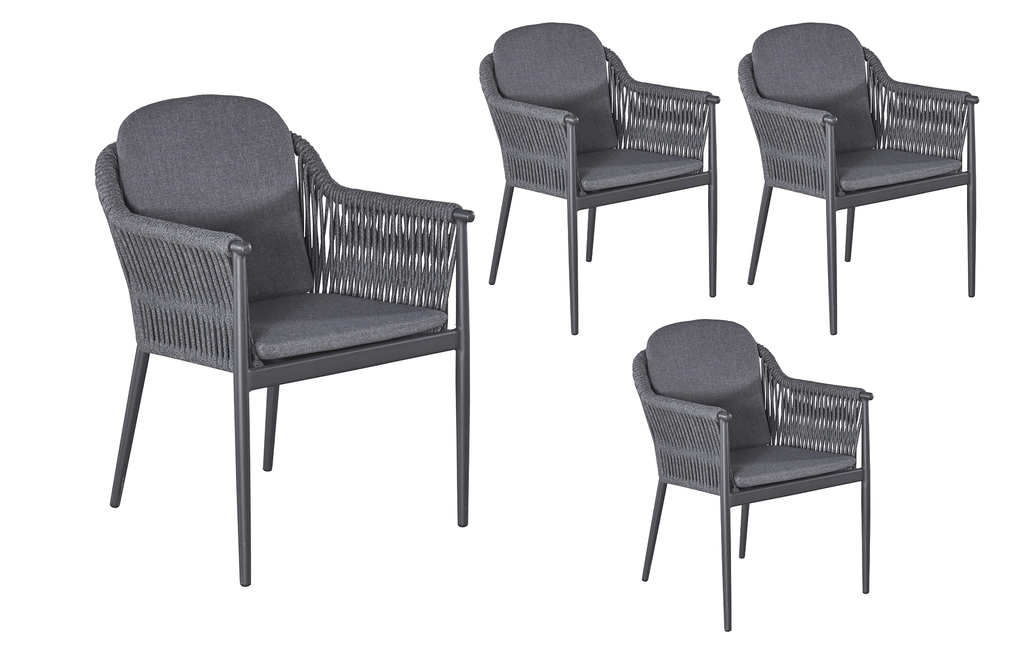LC Garden »Bari« 4er Set Gartenstühle II Anthrazit Aluminium/Rope Armlehnstühle mit Sitz-und Rückenkissen