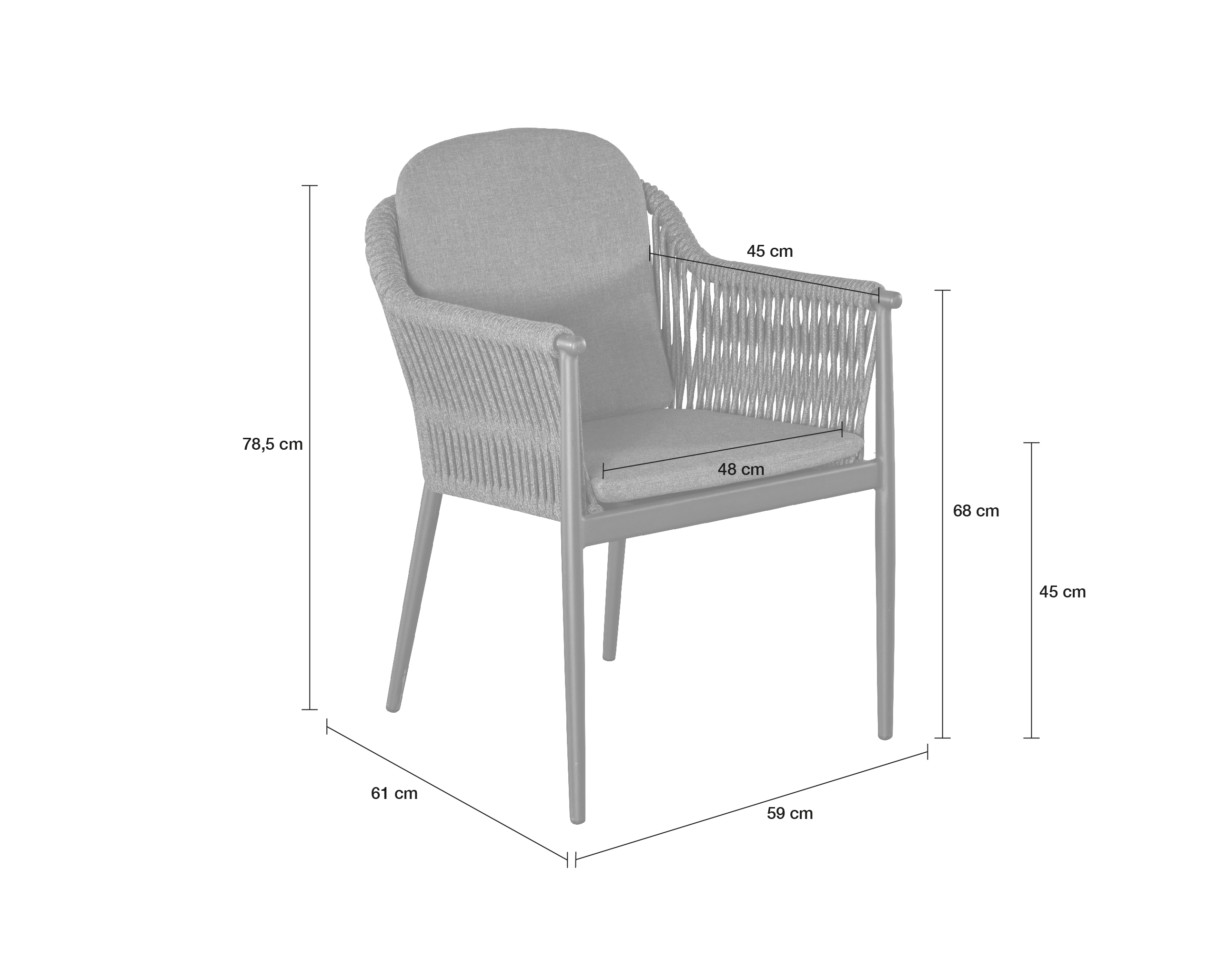 LC Garden »Bari« Gartenstuhl II Anthrazit Aluminium/Rope Armlehnstuhl mit Sitz-und Rückenkissen