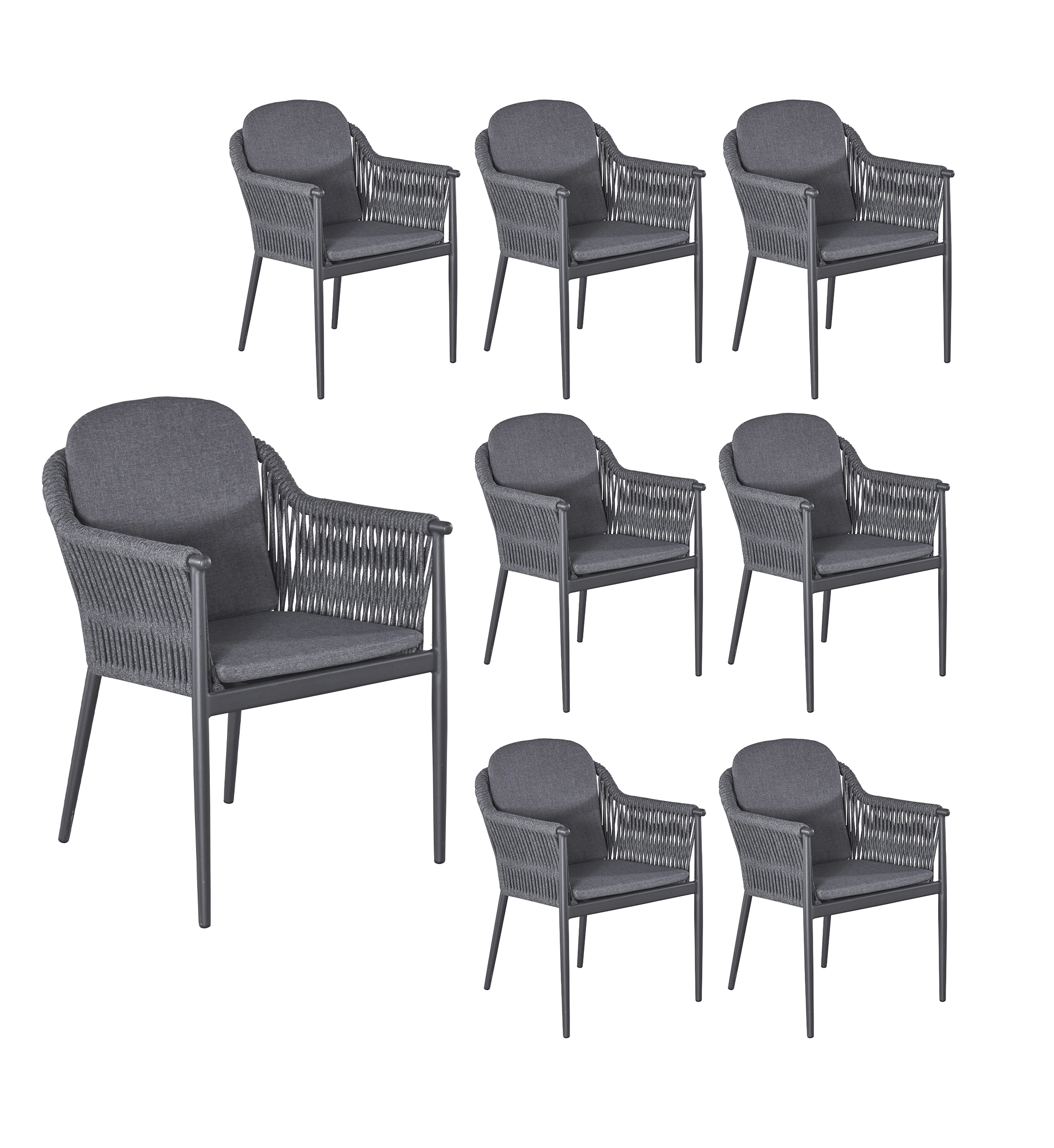 LC Garden »Bari« 8er Set Gartenstühle II Anthrazit Aluminium/Rope Armlehnstühle mit Sitz-und Rückenkissen