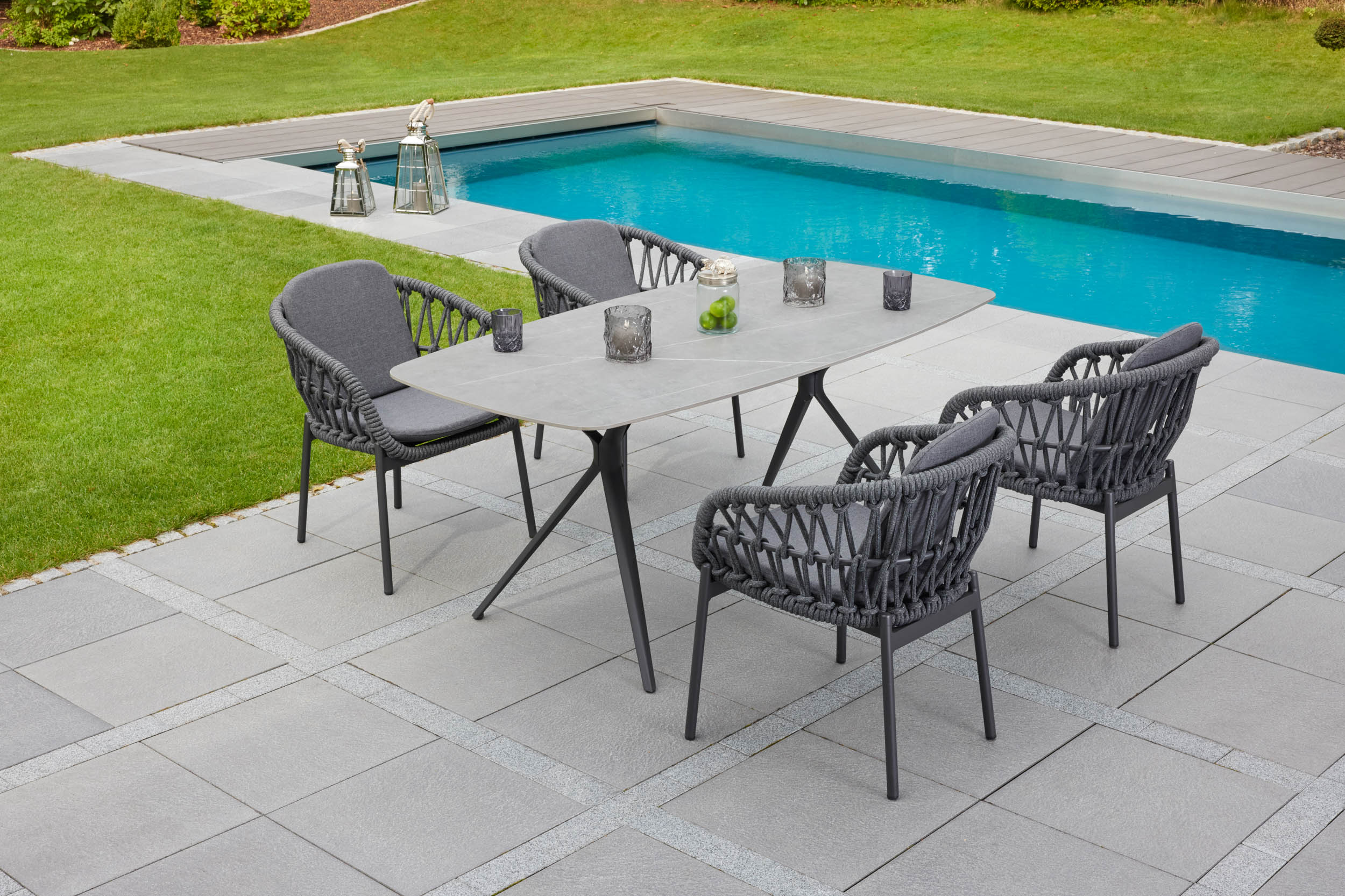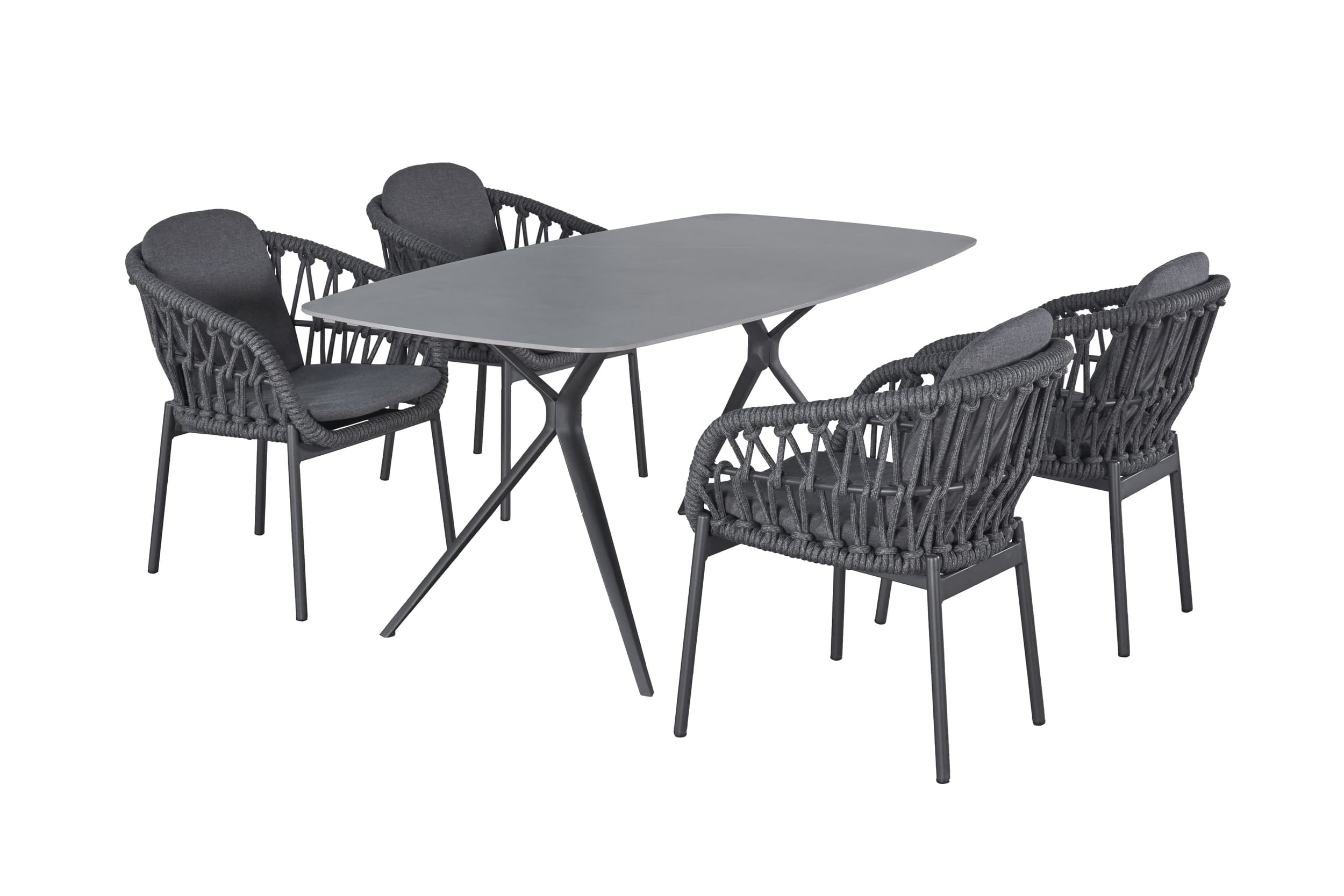 LC Garden »Bari« Gartenset X 5tlg. grau/anthrazit Esstisch 180x100cm Aluminium/sintered stone + 4 Gartenstühle Rope Sitzgruppe
