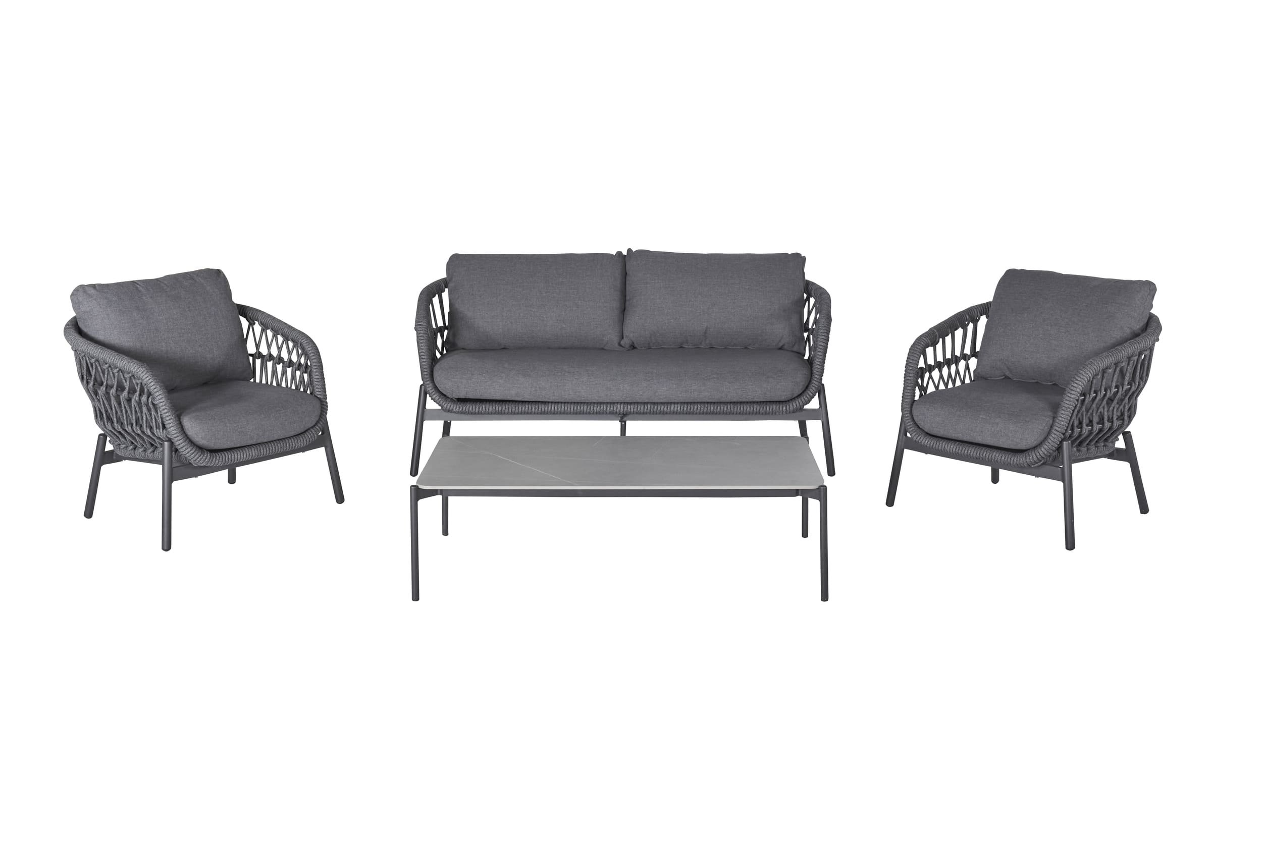 - Gartenset Bari bestehend aus zwei Sesseln, einem 2-Sitzer Sofa und einem passenden Loungetisch in anthrazitfarbender Marmoroptik