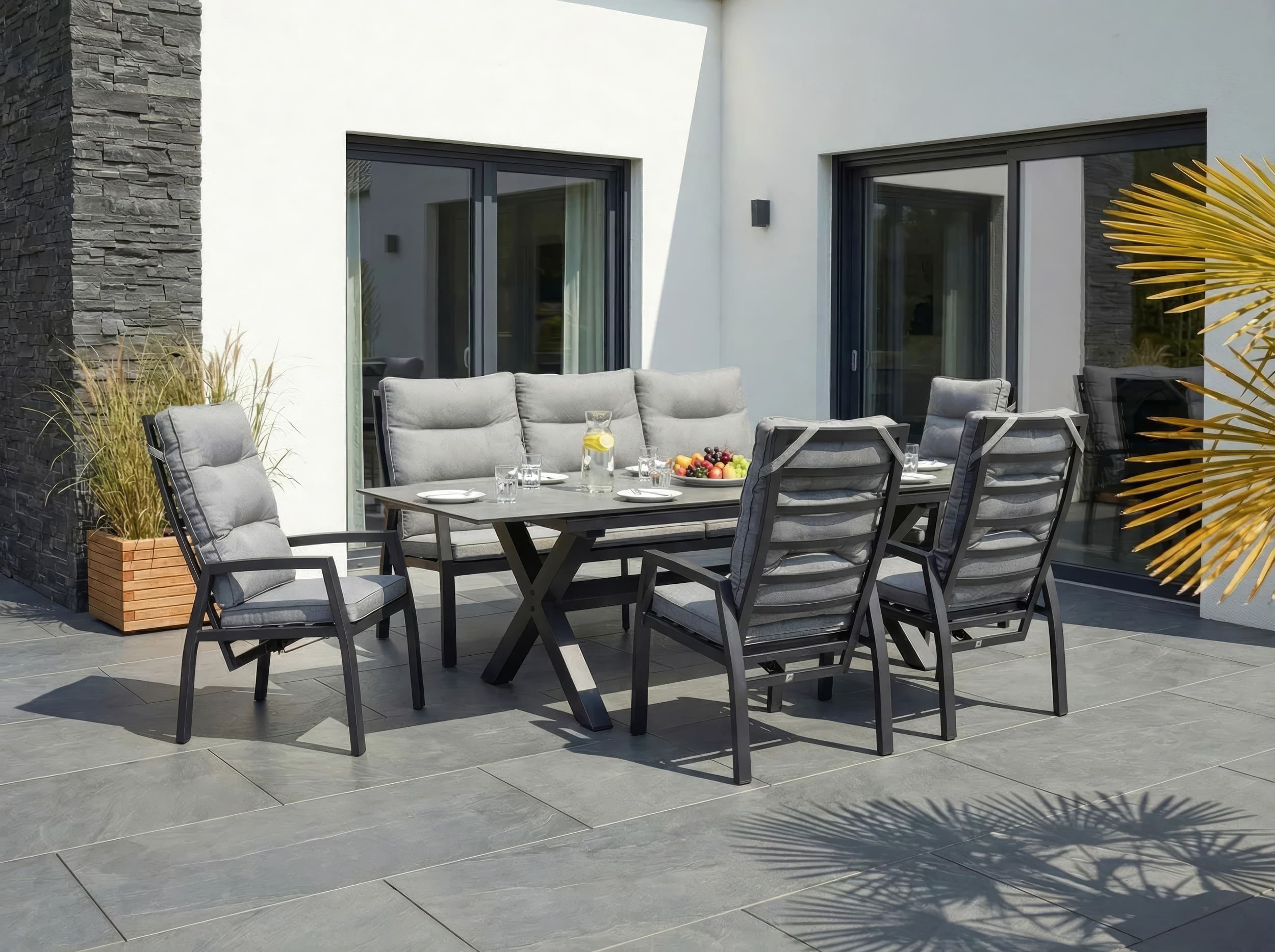 Das LC Garden Bondino Dining Sofa 3-Sitzer ist die ideale Wahl, wenn du dir am Esstisch draußen mehr Komfort wünschst. Durch die Kombination aus aufrechter Sitzposition und großzügiger Polsterung eignet sich das Sofa perfekt für lange Abende beim Essen, Spielen oder Zusammensitzen auf Terrasse, Balkon oder im Garten.
