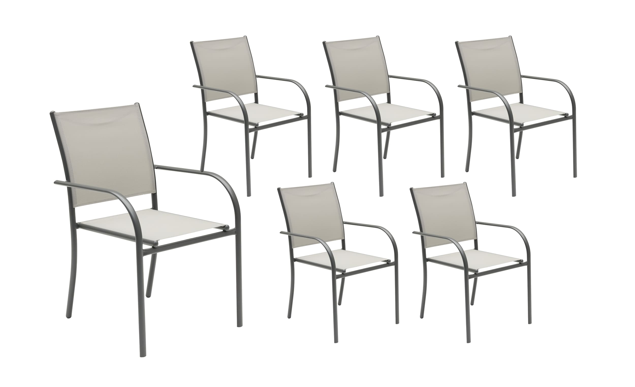 LC Garden »Campino« 6er Set Gartenstühle Beige Stapelstühle Bistrostühle Textilen