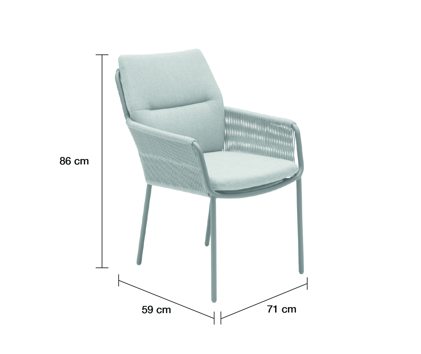 Das Aluminiumgestell macht den Stuhl besonders alltagstauglich: Es ist leicht, stabil, rostfrei und für draußen gemacht – also wetterfest und pflegeleicht. Die ergonomisch geformte Sitz- und Rückenfläche bietet guten Halt, während die Armlehnen das Sitzen noch bequemer machen und das Aufstehen erleichtern. Für extra Komfort sorgt das passende Sitzkissen, damit auch längere Abende am Tisch entspannt bleiben.