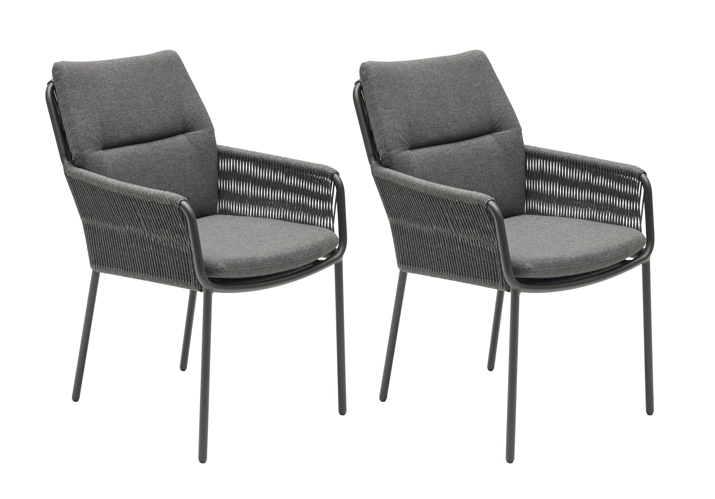 LC Garden »Como« 2er Set Gartenstühle Rope Anthrazit Armlehnstühle inkl. Kissen