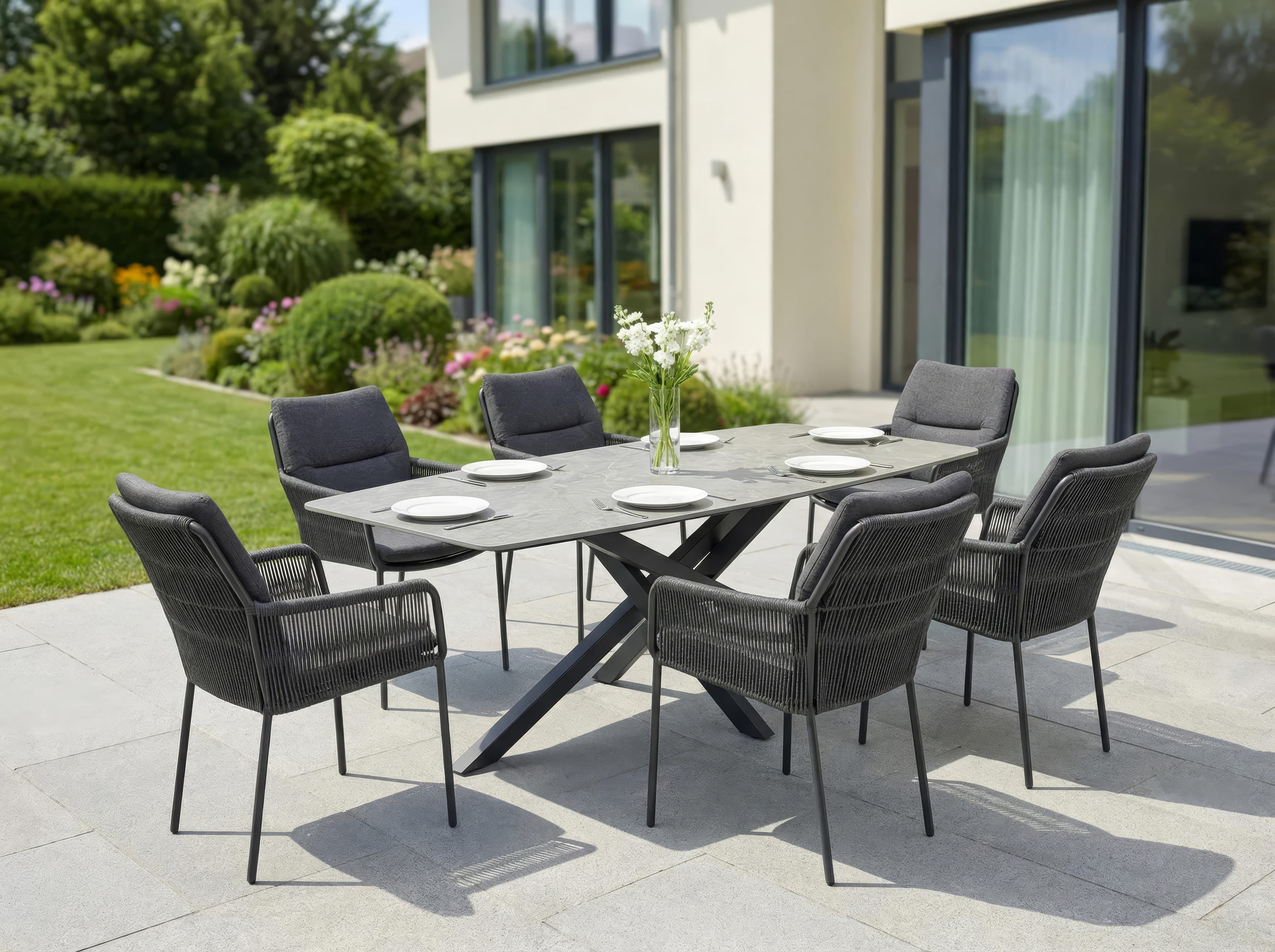 Ob als einzelner Hingucker oder gleich als Sitzgruppe mit passendem Tisch: Der »Como« Armlehnenstuhl ist vielseitig einsetzbar – ideal für Outdoor-Dining, gesellige Runden oder einfach entspannte Stunden an der frischen Luft.