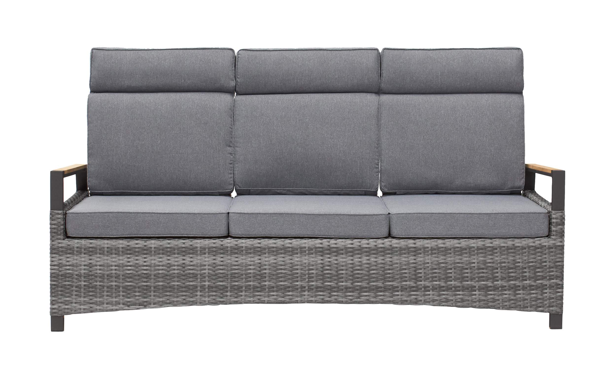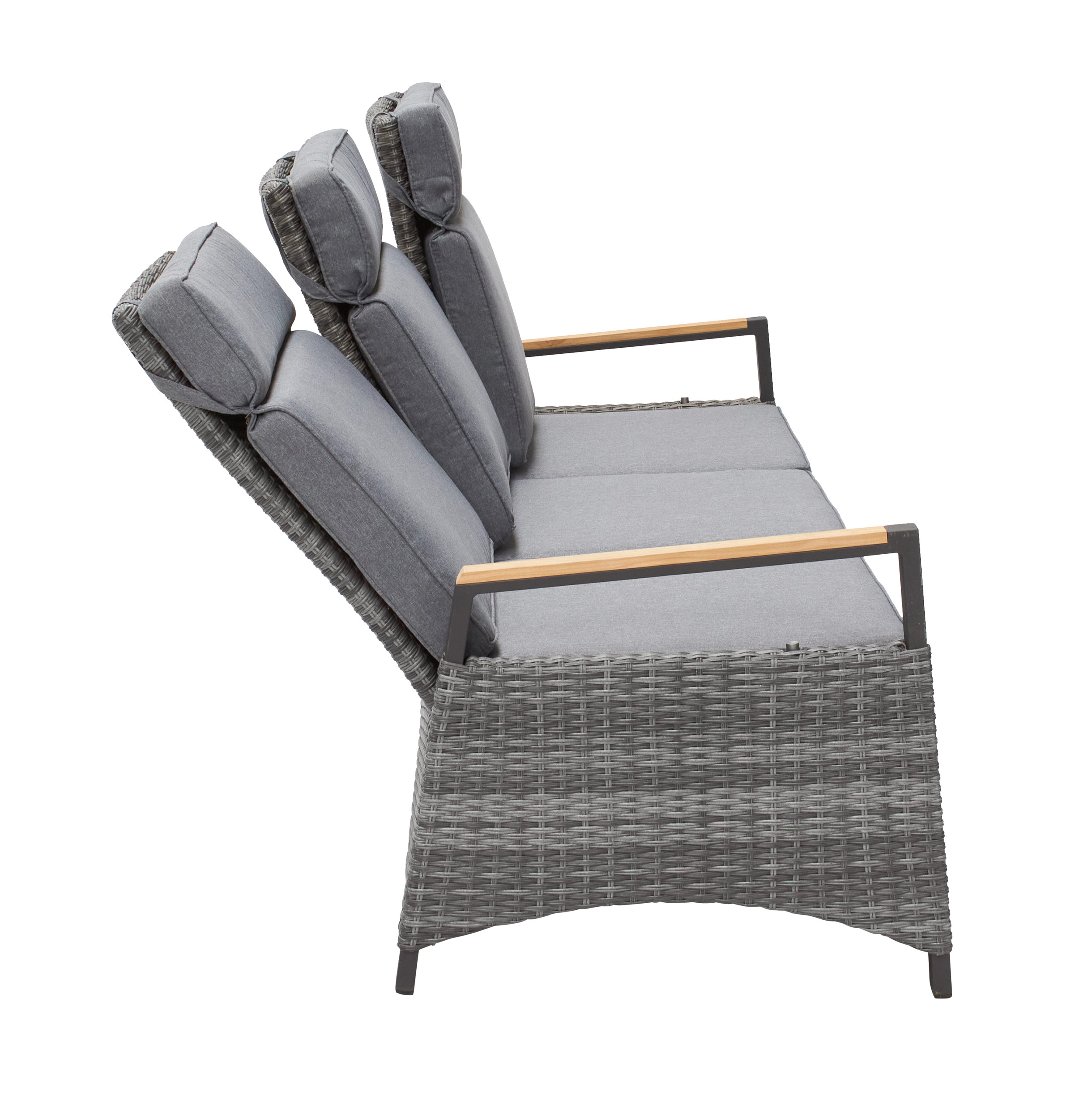 - 3-Sitzer Sofa mit Teakholz-Armlehnen und Geflecht in natur-grau