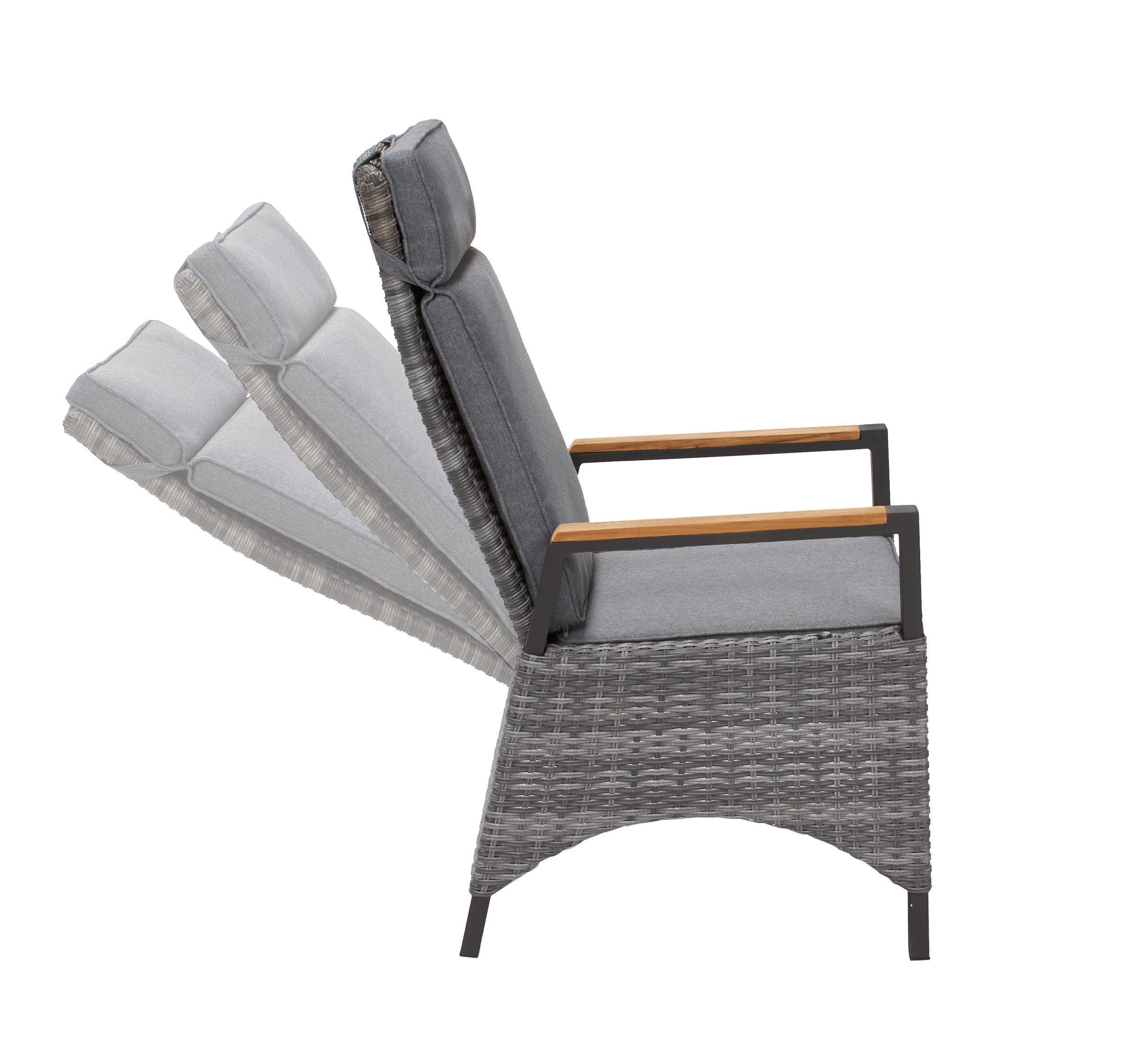 - Gestell: Aluminium, Polyrattan, Teakholz