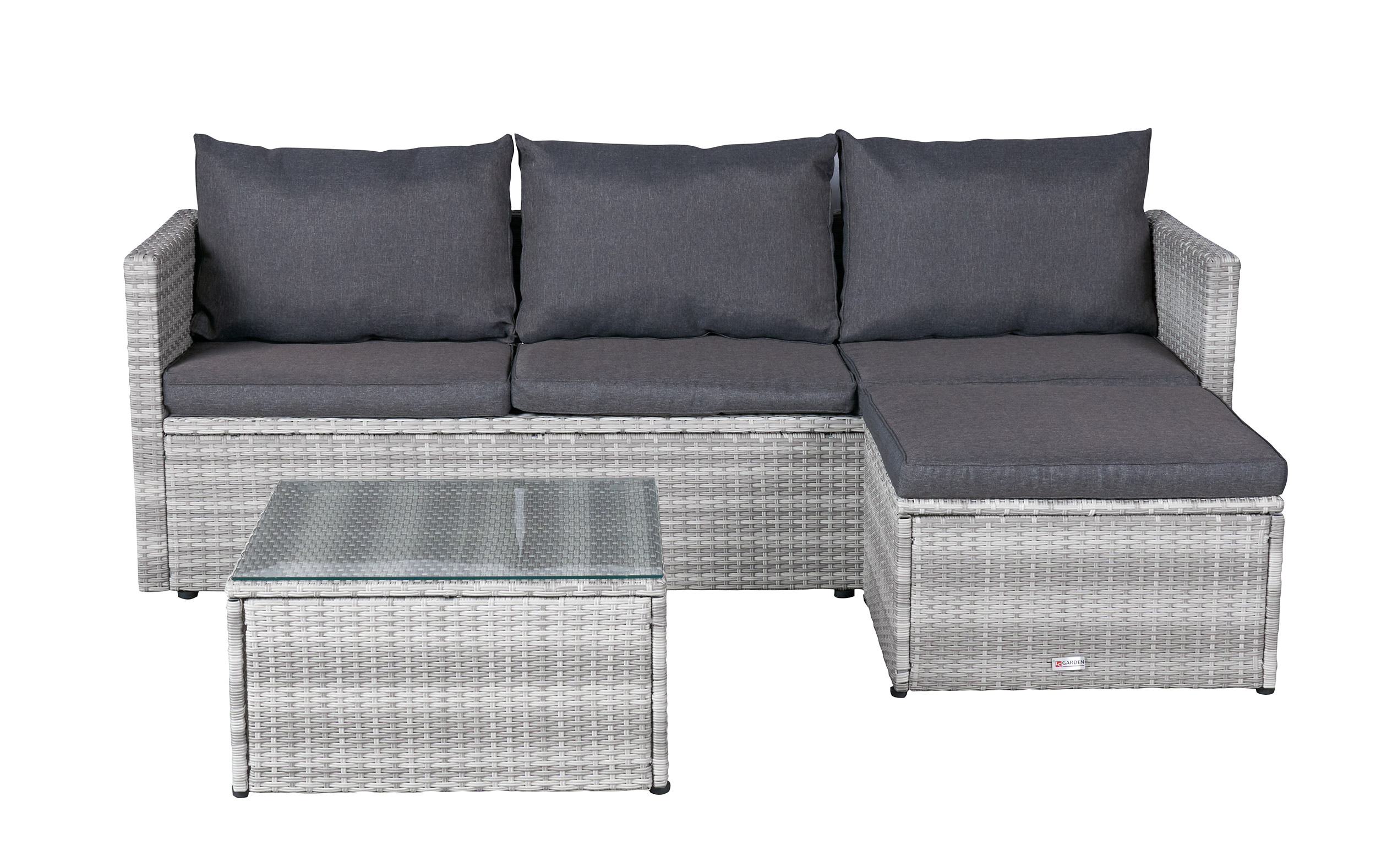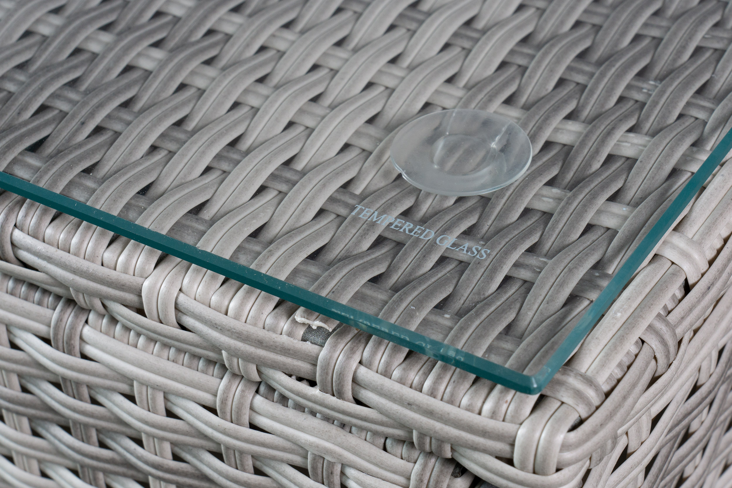 Die Lounge kommt als 3er-Set mit einem 3-Sitzer Sofa, einem quadratischen Tisch inkl. Glasplatte, sowie einem Hocker in trendiger Rattan Optik. Auf dem Sofa finden Sie gemütlich Platz und genießen dank des 6,5 cm dicken Sitzpolsters einen hohen Sitzkomfort. Die Bezüge sind zu 100% aus Polyester und können bei Bedarf bei 30 Grad per Hand gewaschen werden. Der Tisch bietet mit seinen 60x60x32cm und Sicherheitsglasplatte ausreichend Platz für Snacks, Spiele und Getränke. Die Polyrattan-Gartenmöbel der Marke LC Garden sind wetterfest und leicht zu reinigen. Dank der UV-Beständigkeit sehen diese Möbel auch nach längerer Zeit immer noch aus wie neu.