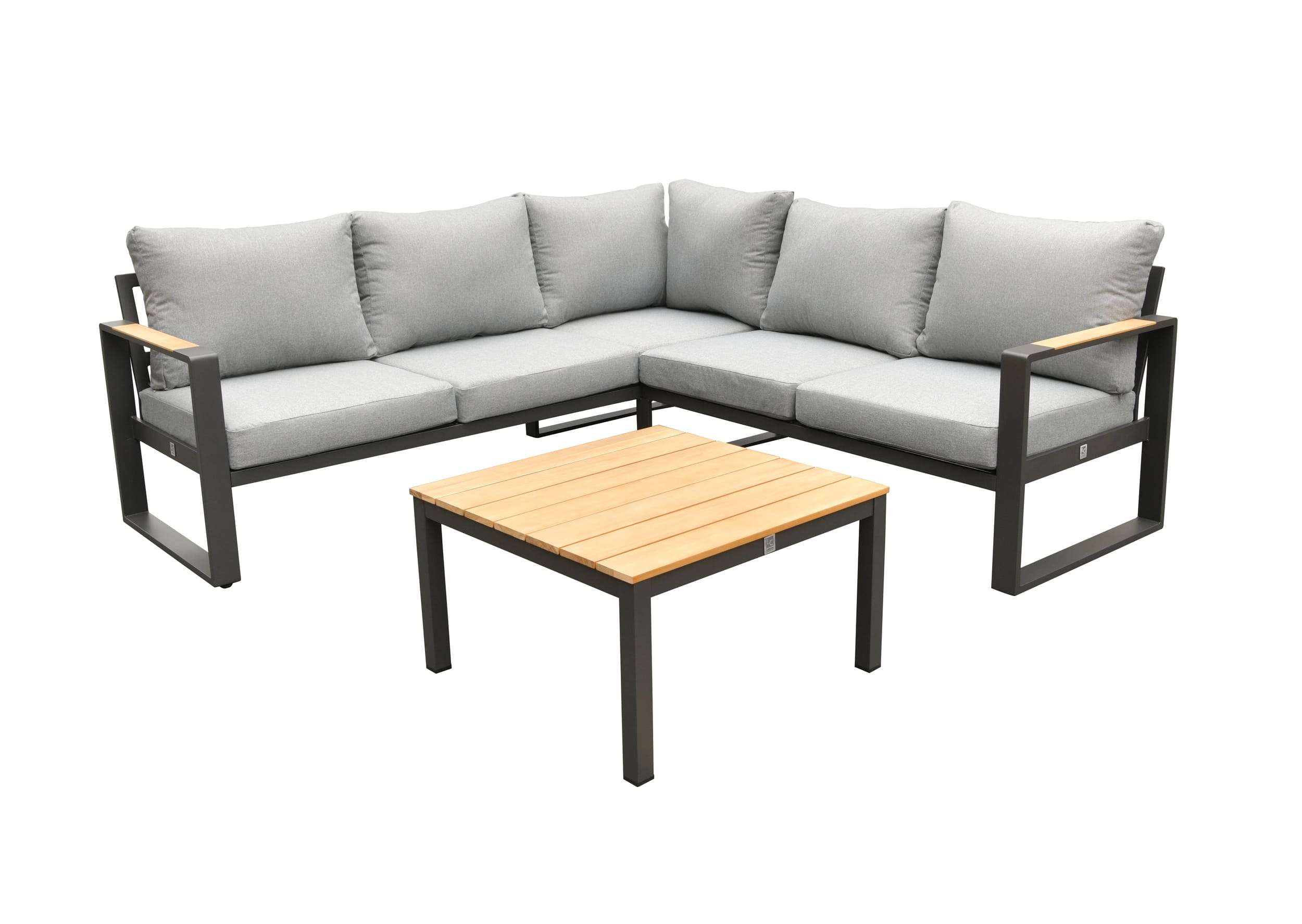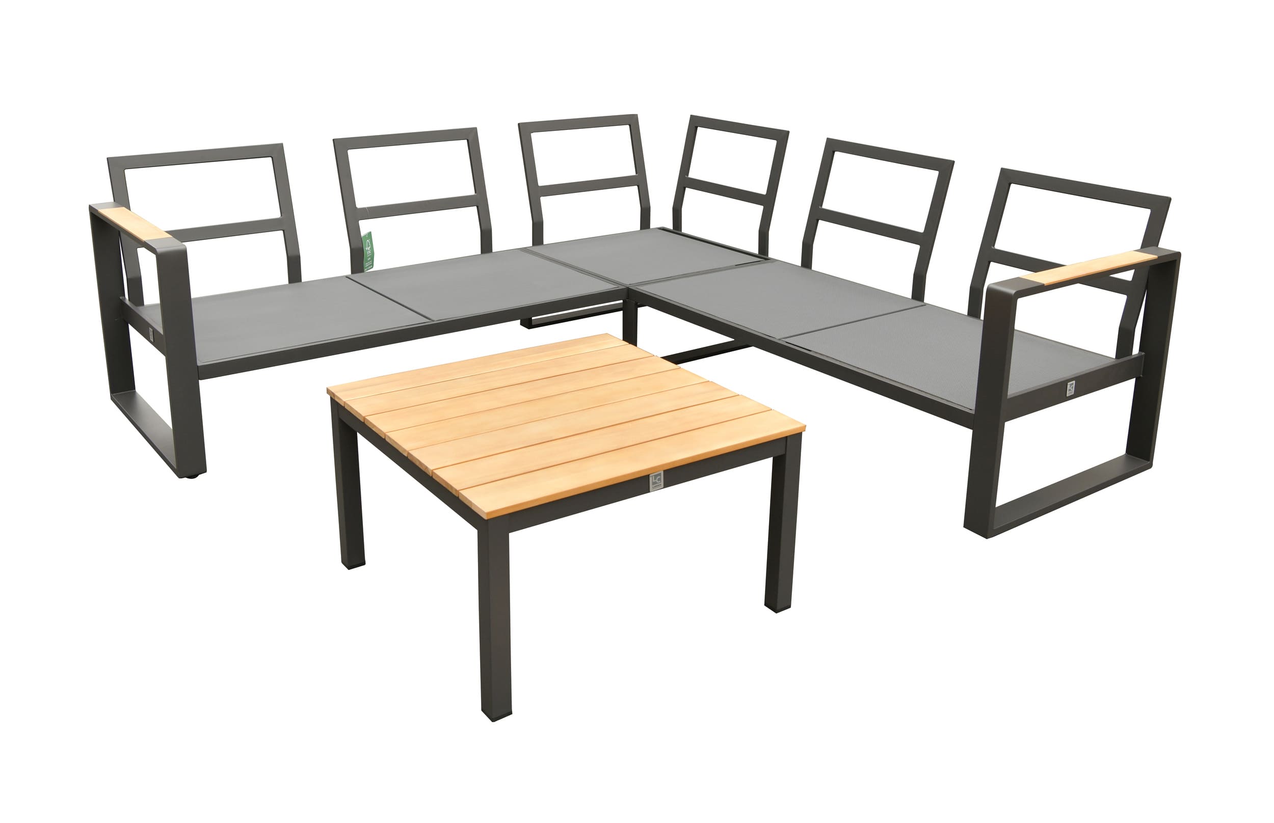 LC Garden »Lyana« Gartenlounge Set Anthrazit 3tlg. Aluminium Textilene Akazienholz Ecklounge