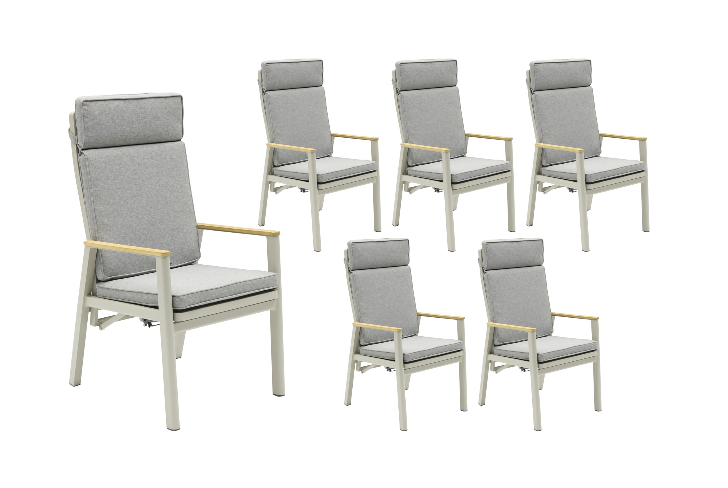 LC Garden »Mira« 6er Set Gartenstühle verstellbar Taupe Gartensessel Positionsstühle Textilene