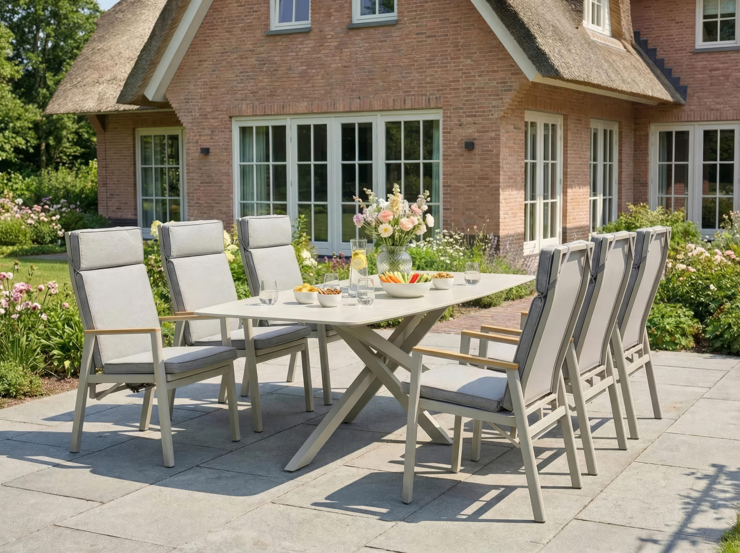 Ob als bequemer Einzelstuhl oder kombiniert mit einem passenden Gartentisch: Der LC Garden »Mira« Dining Positionsstuhl vereint Komfort, Funktion und Design – für entspanntes Outdoor-Dining auf hohem Niveau.