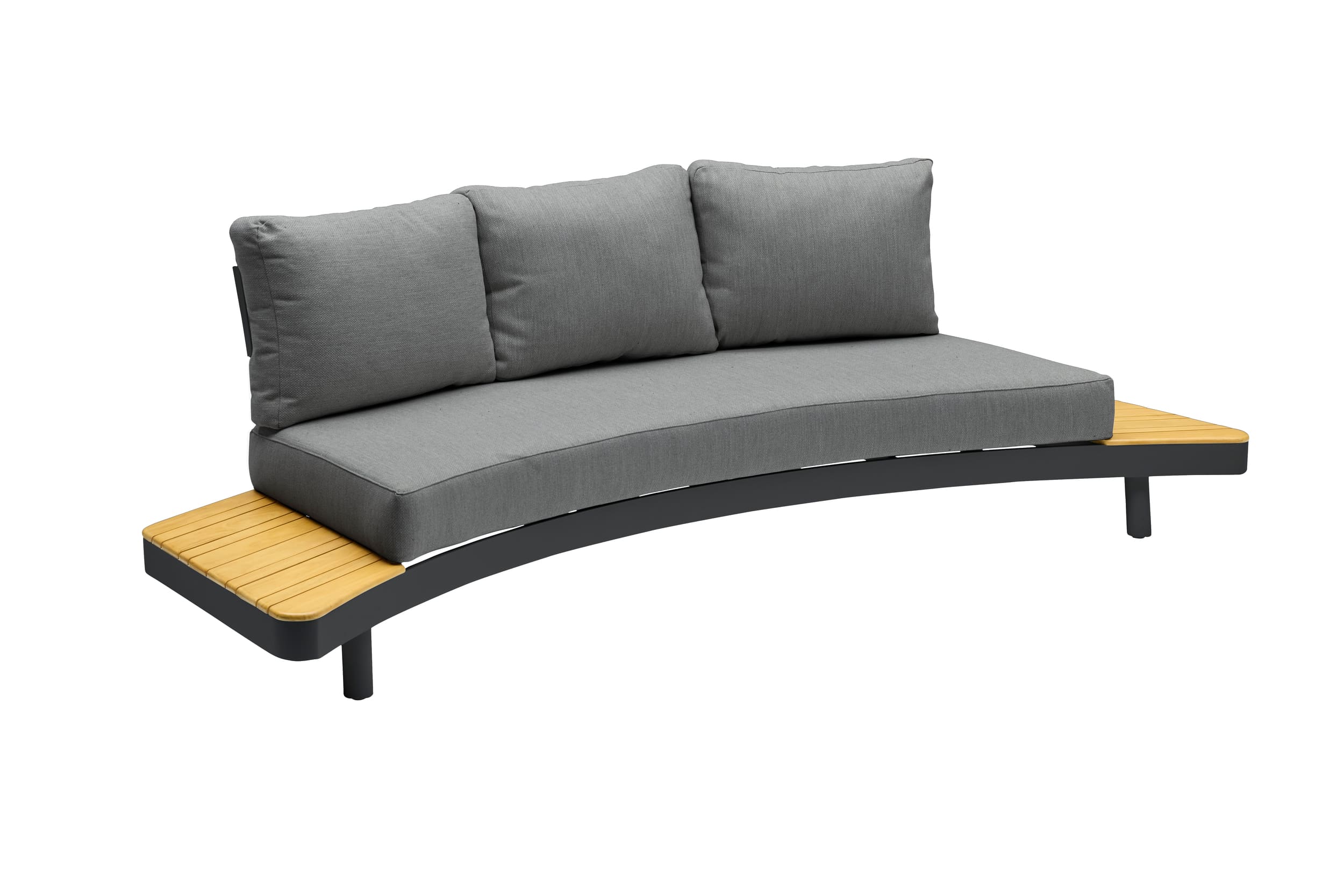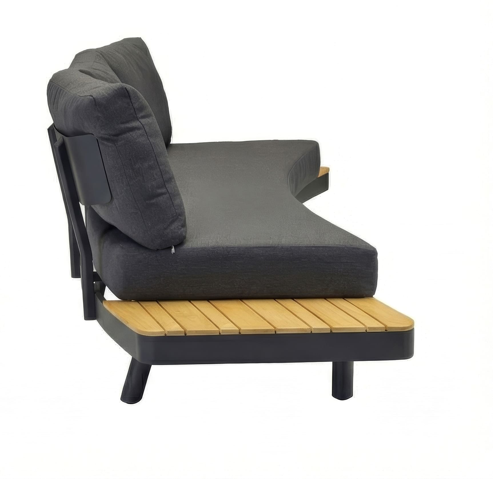 LC Garden »Puerto« Loungesofa Couch Dreisitzer Anthrazit Teakholz-Ablagen