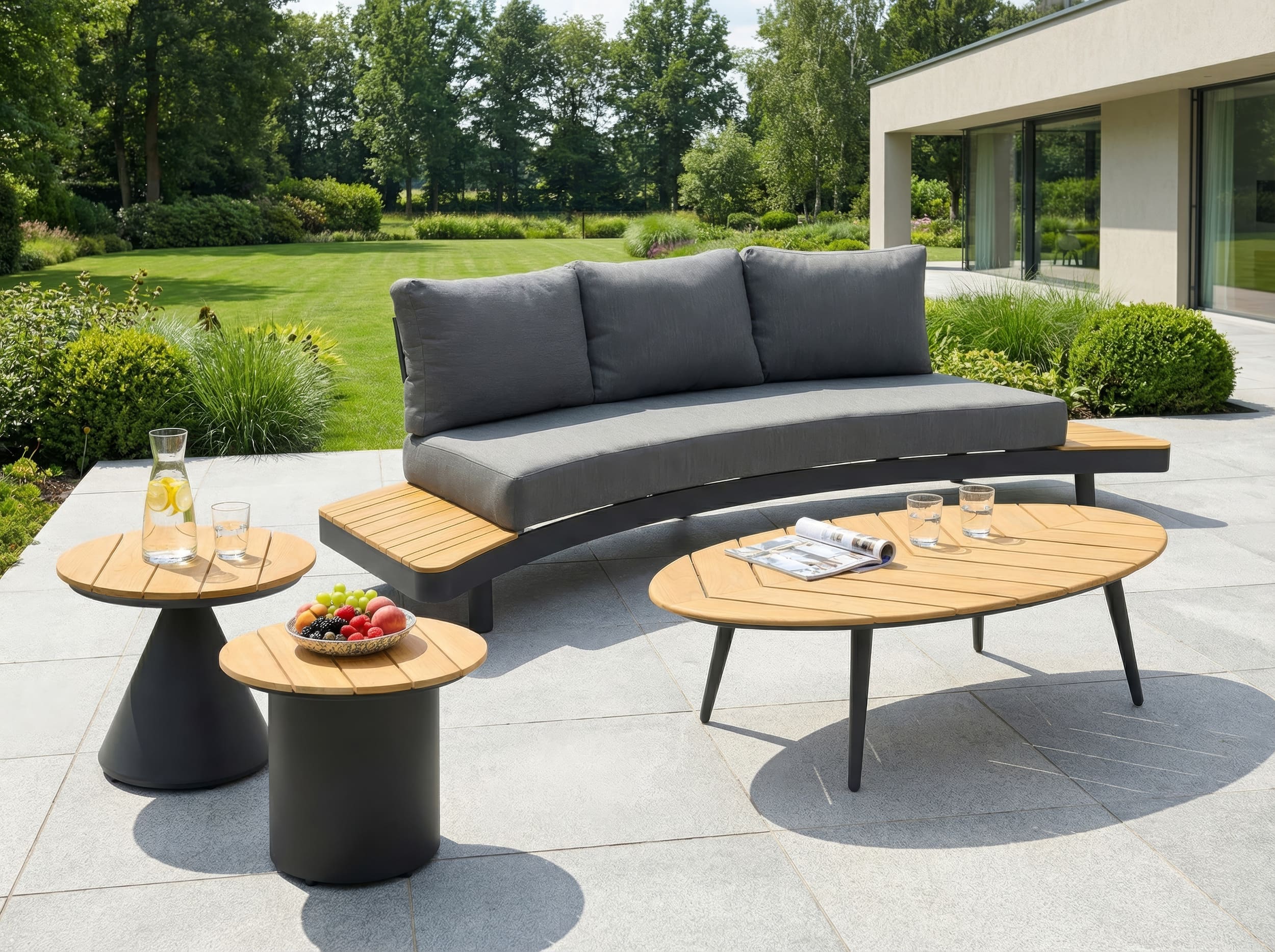 - Modulares Komfort-Sofa: Großzügiges, geschwungenes 3-Sitzer-Element mit tiefen, komfortablen Polstern für maximale Entspannung im Freien.
