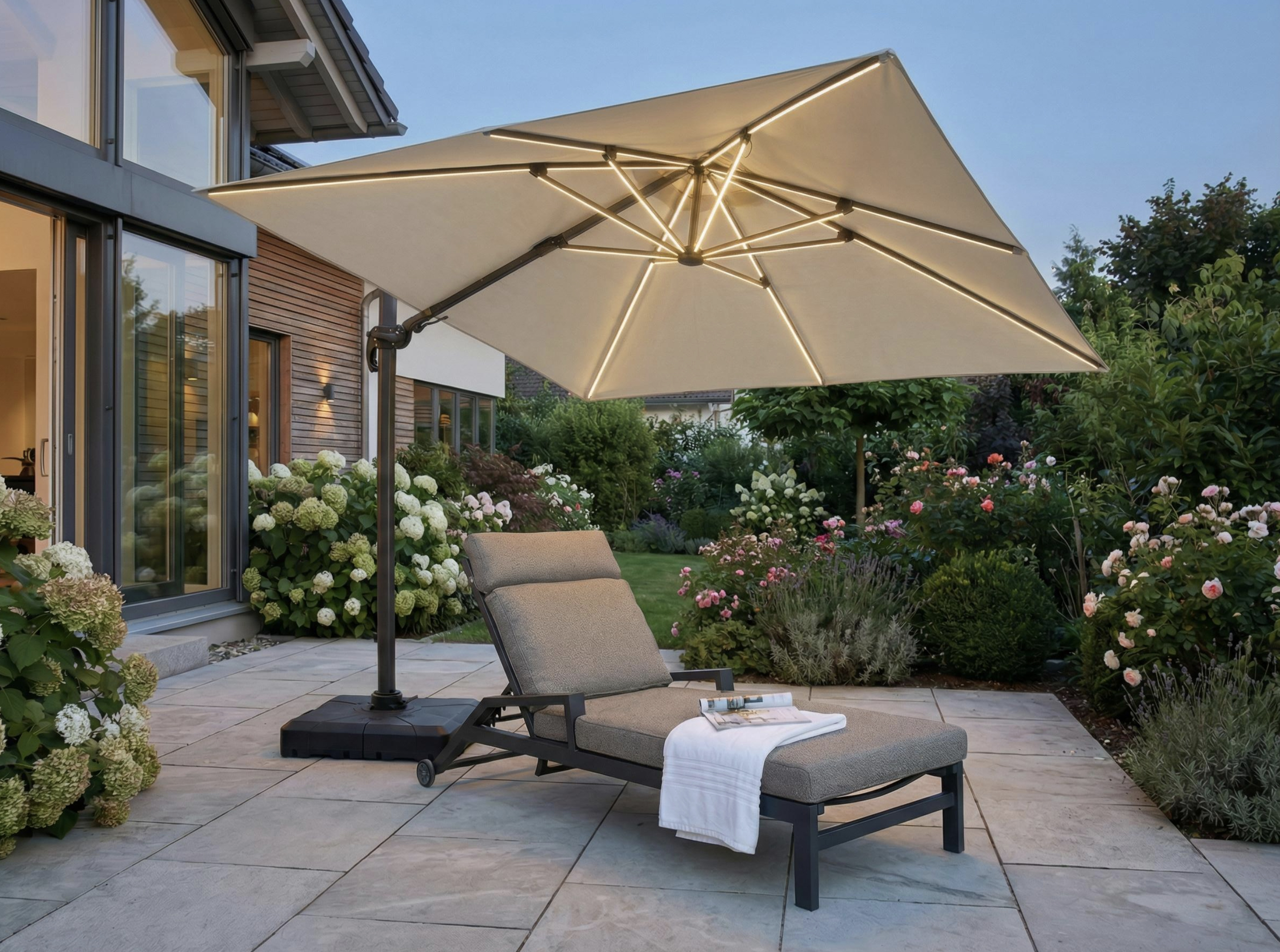 - Inklusive Schirmfuß: standsichere Basis für sofortigen Einsatz