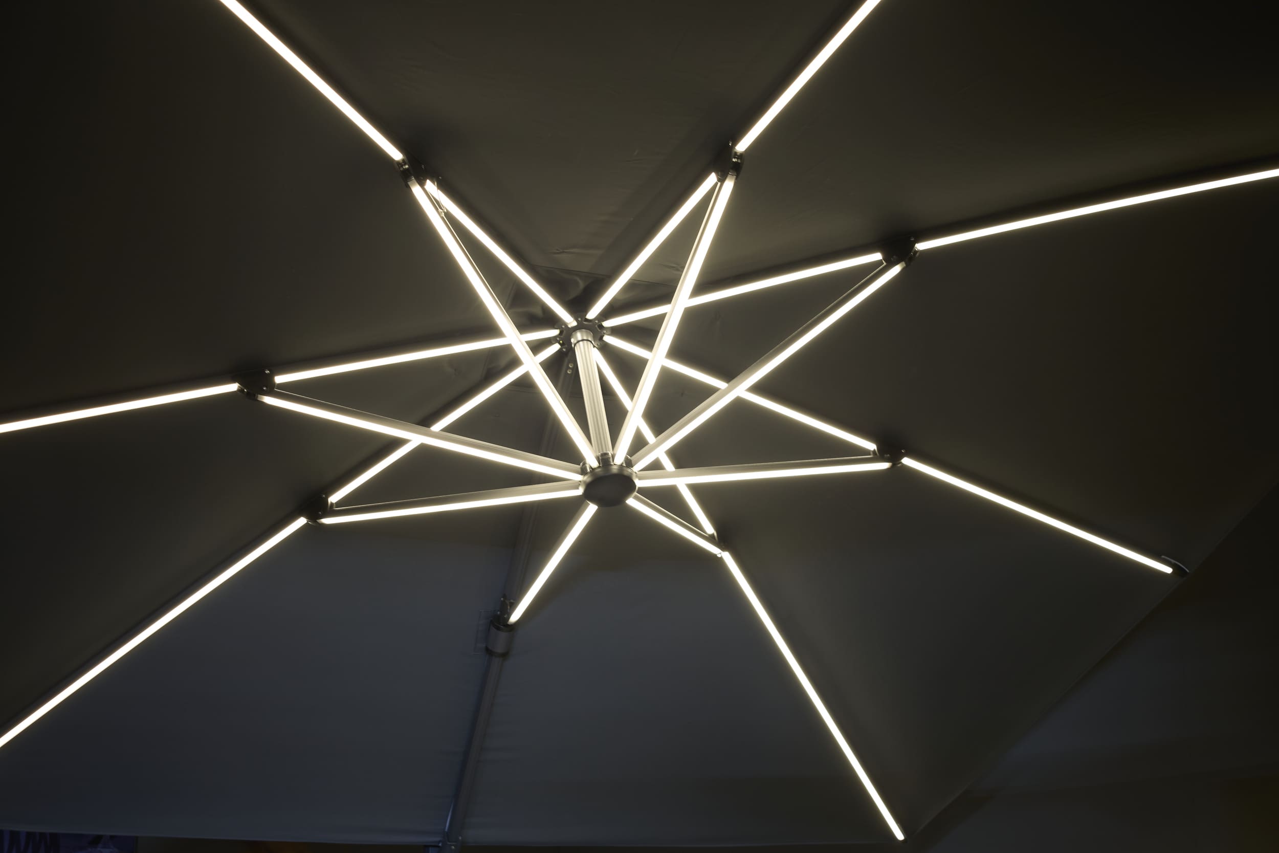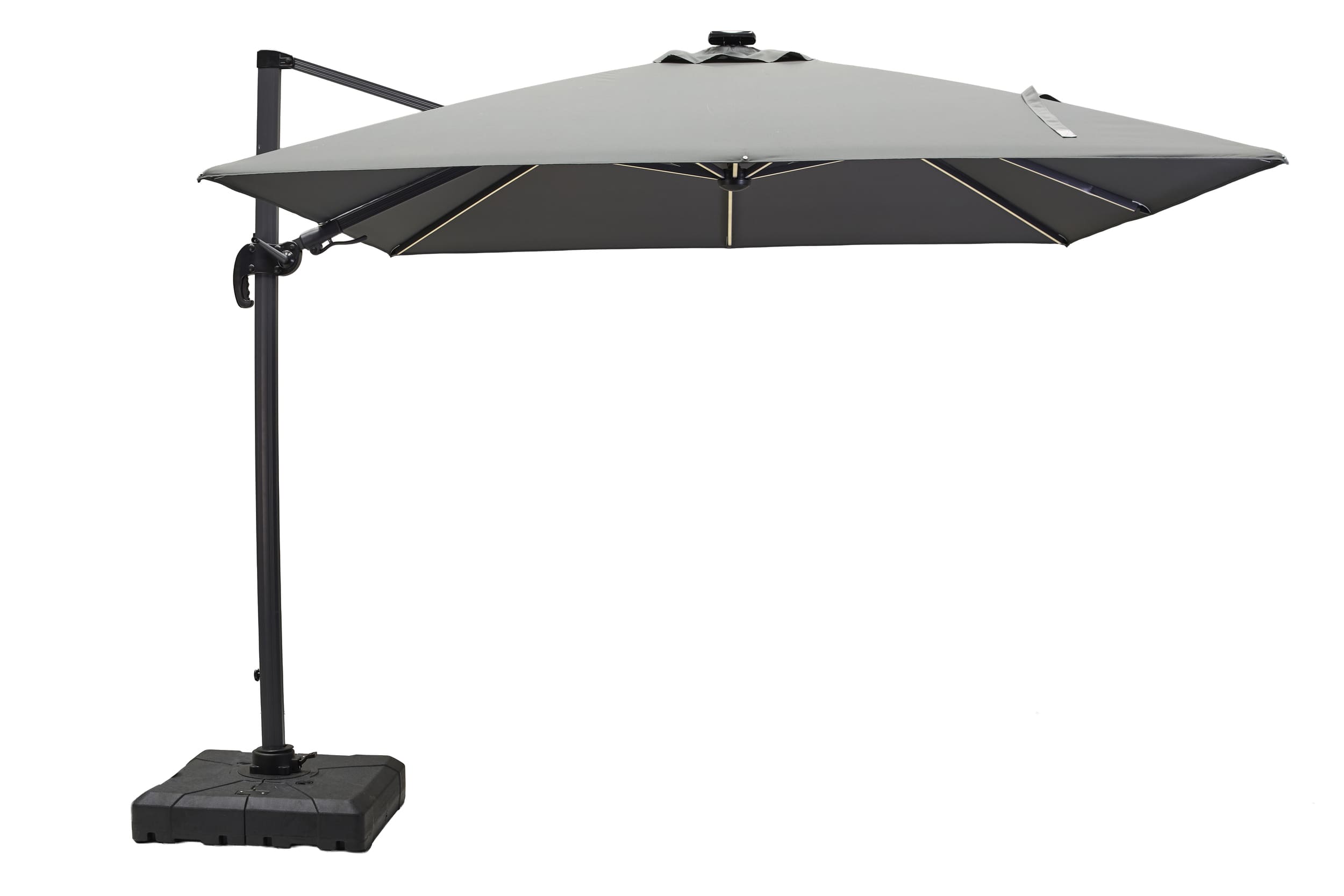 LC Garden »Salerno« Ampelschirm Grau 300cm inkl. Schutzhülle& Schirmfuß mit LED-Solarbeleuchtung schwenk- und drehbar 360°