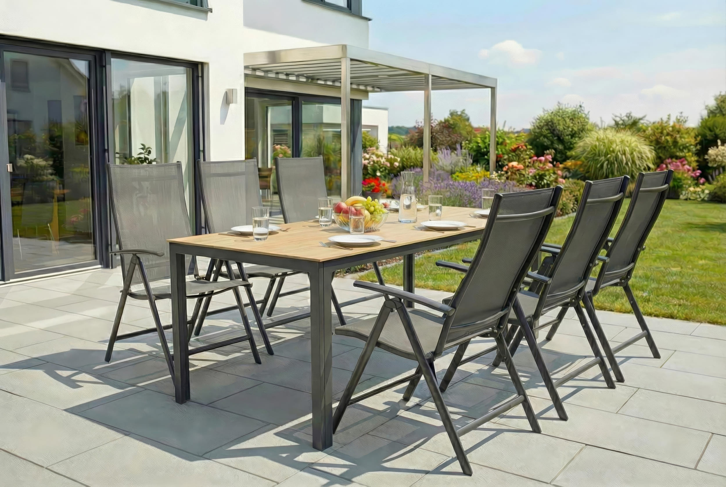 - Modernes Outdoor-Design: Zeitloses Styling, passend zu Gartenstühlen, Klappsesseln oder kompletten Gartensets, für ein harmonisches Outdoor-Ambiente.