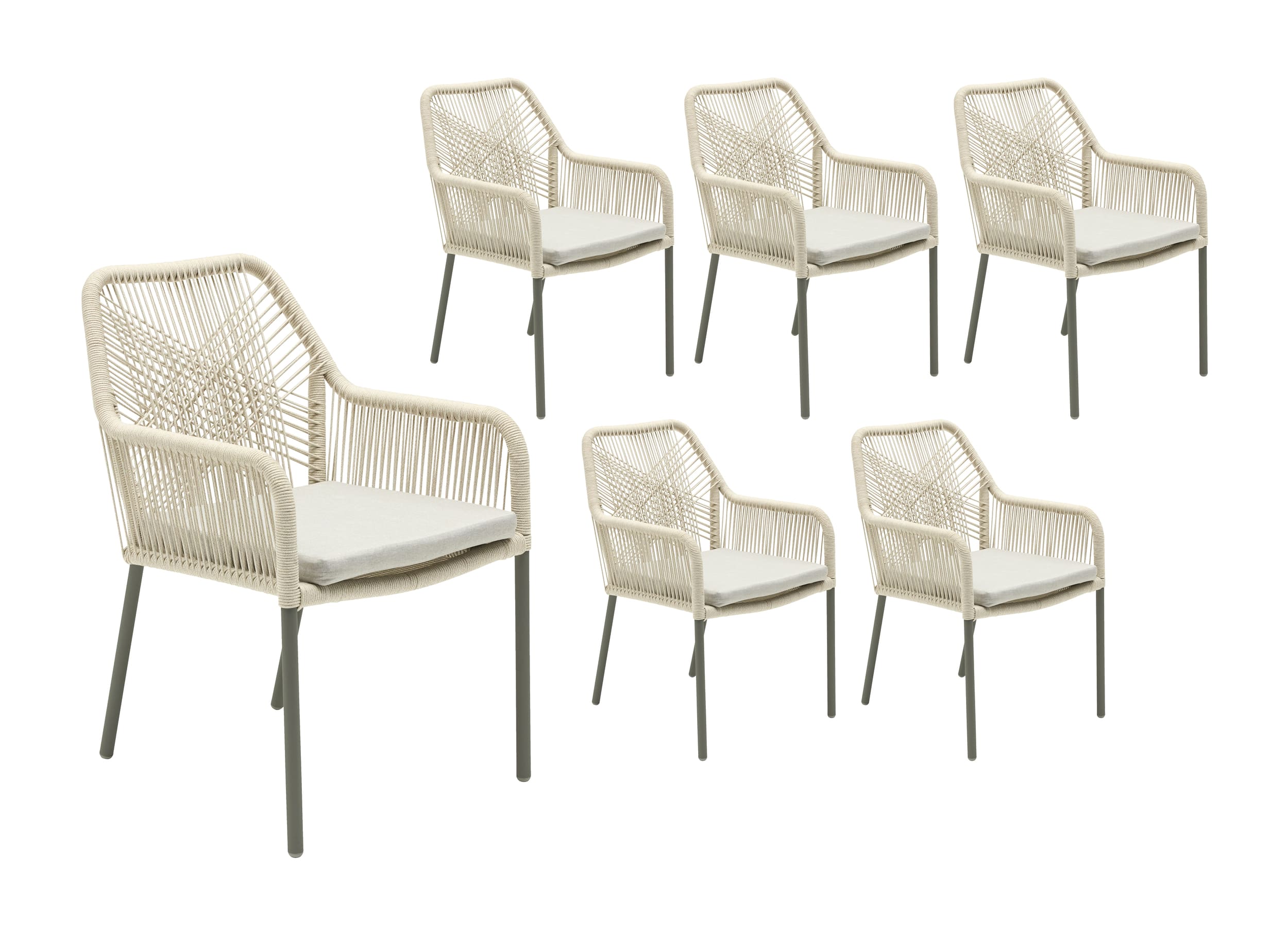 LC Garden »Stilo« 6er Set Gartenstühle Rope Natur Armlehnstühle inkl. Sitzkissen