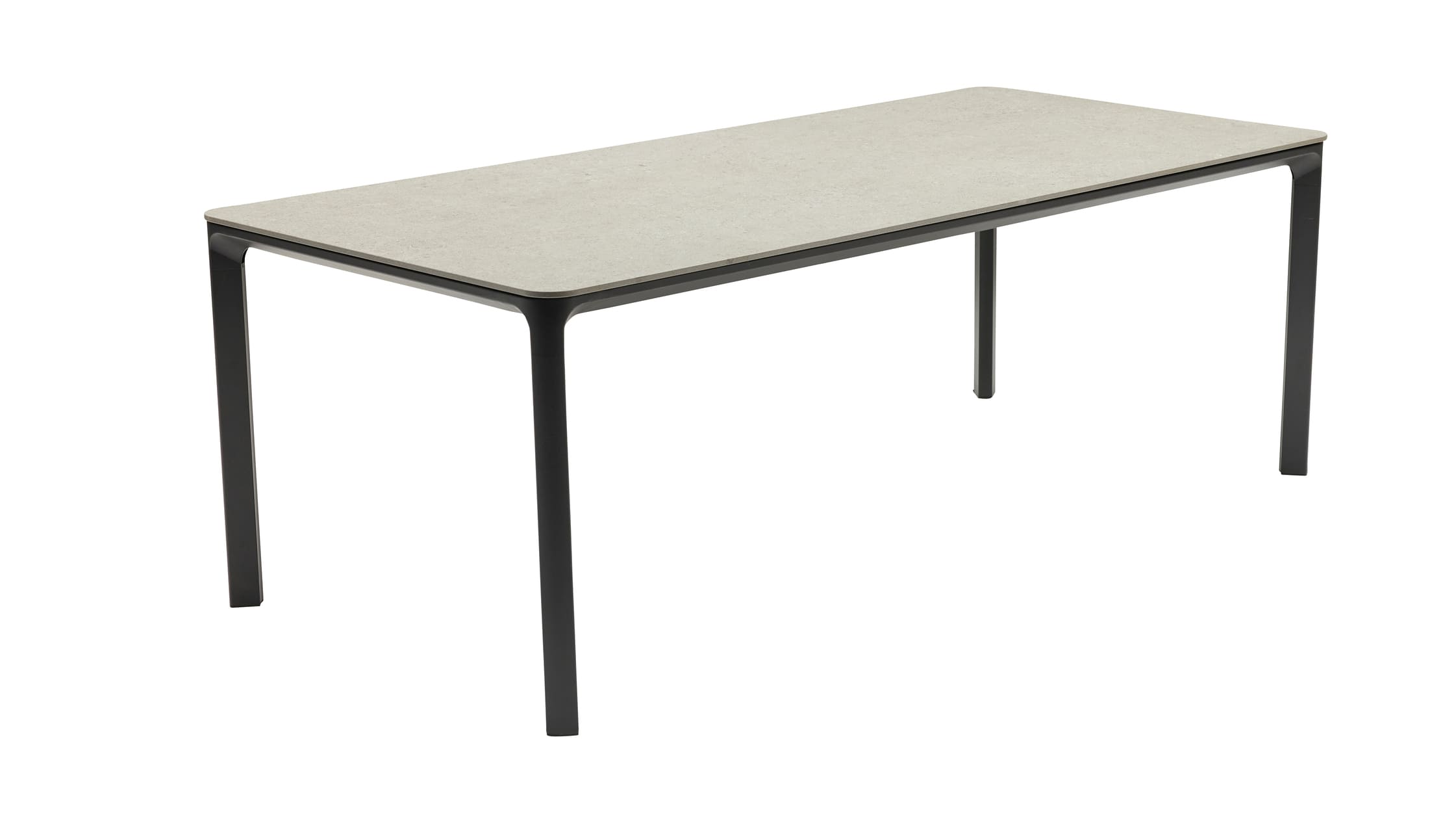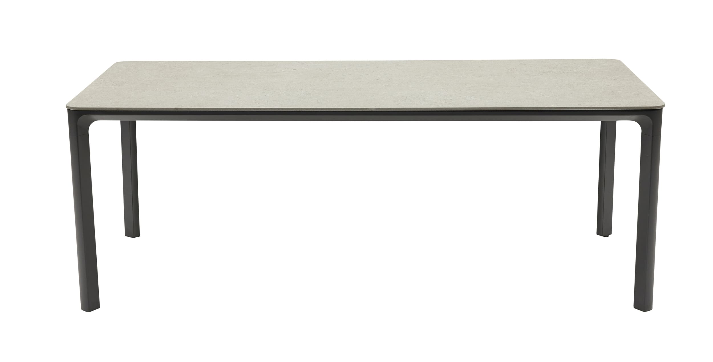 Der passende Gartentisch ergänzt das Set perfekt. Auch hier sorgt ein Aluminiumgestell in Anthrazit für Stabilität und Outdoor-Tauglichkeit. Die Tischplatte aus Sintered Stone in Steingrau wirkt edel im Stein-Look und ist zugleich robust und pflegeleicht – ideal für den täglichen Einsatz im Außenbereich.