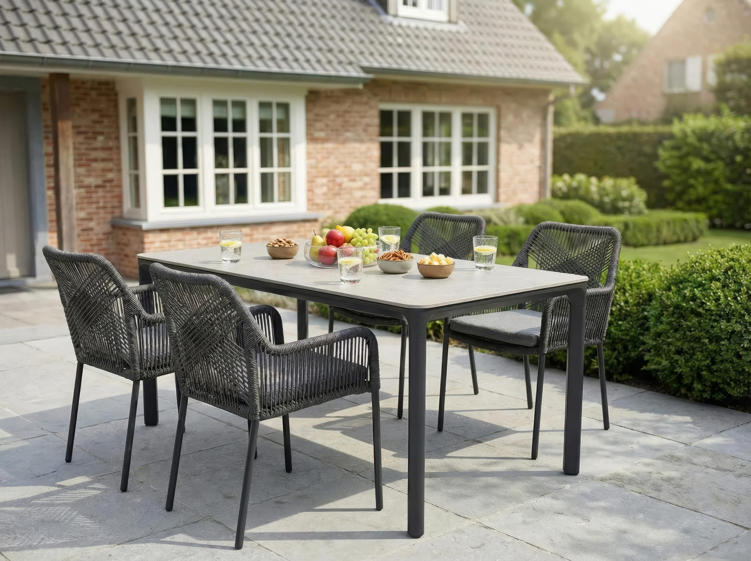 LC Garden »Stilo« Gartenset Gartentisch 180cm Sintered Stone + 4 Gartenstühle Rope Anthrazit