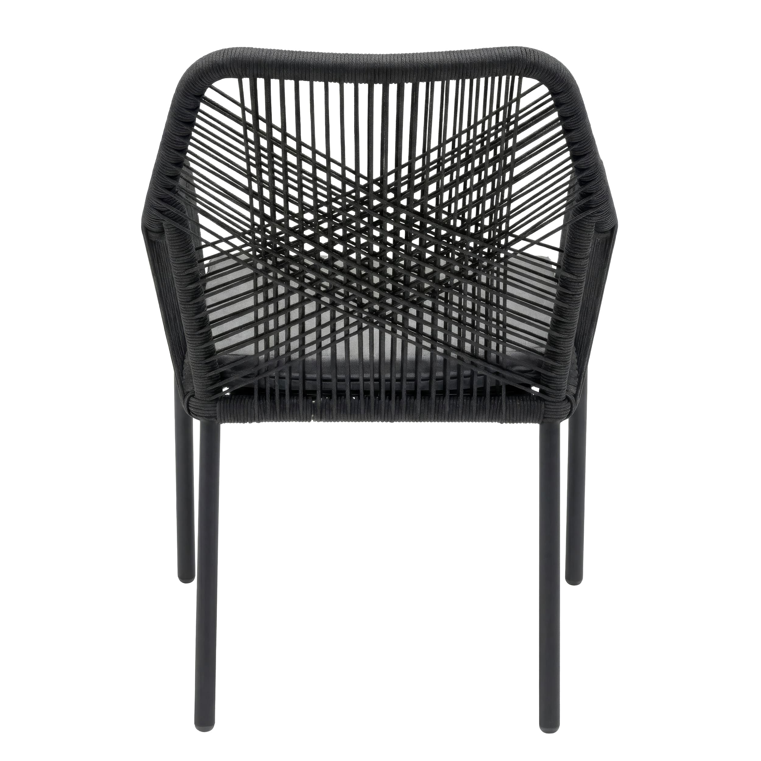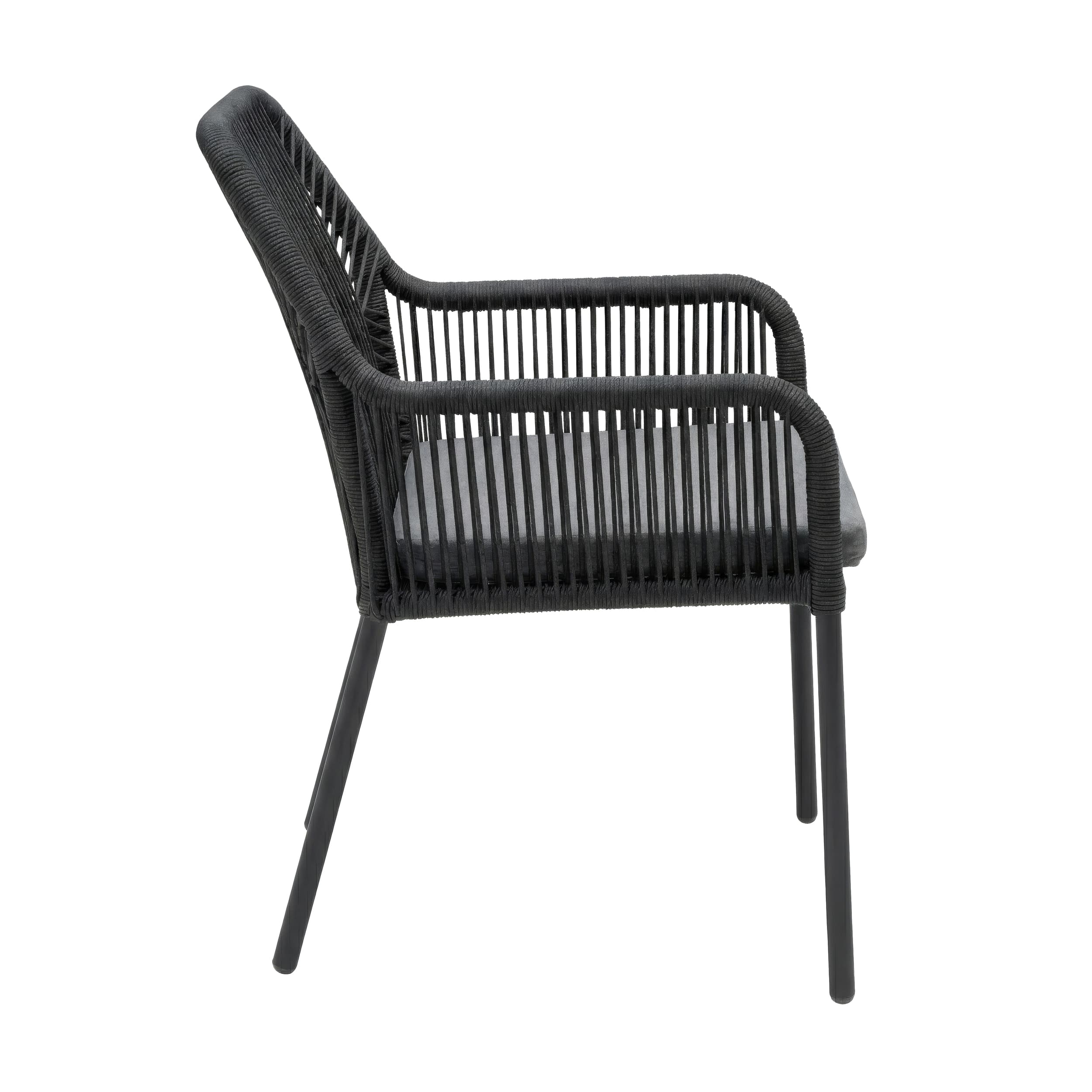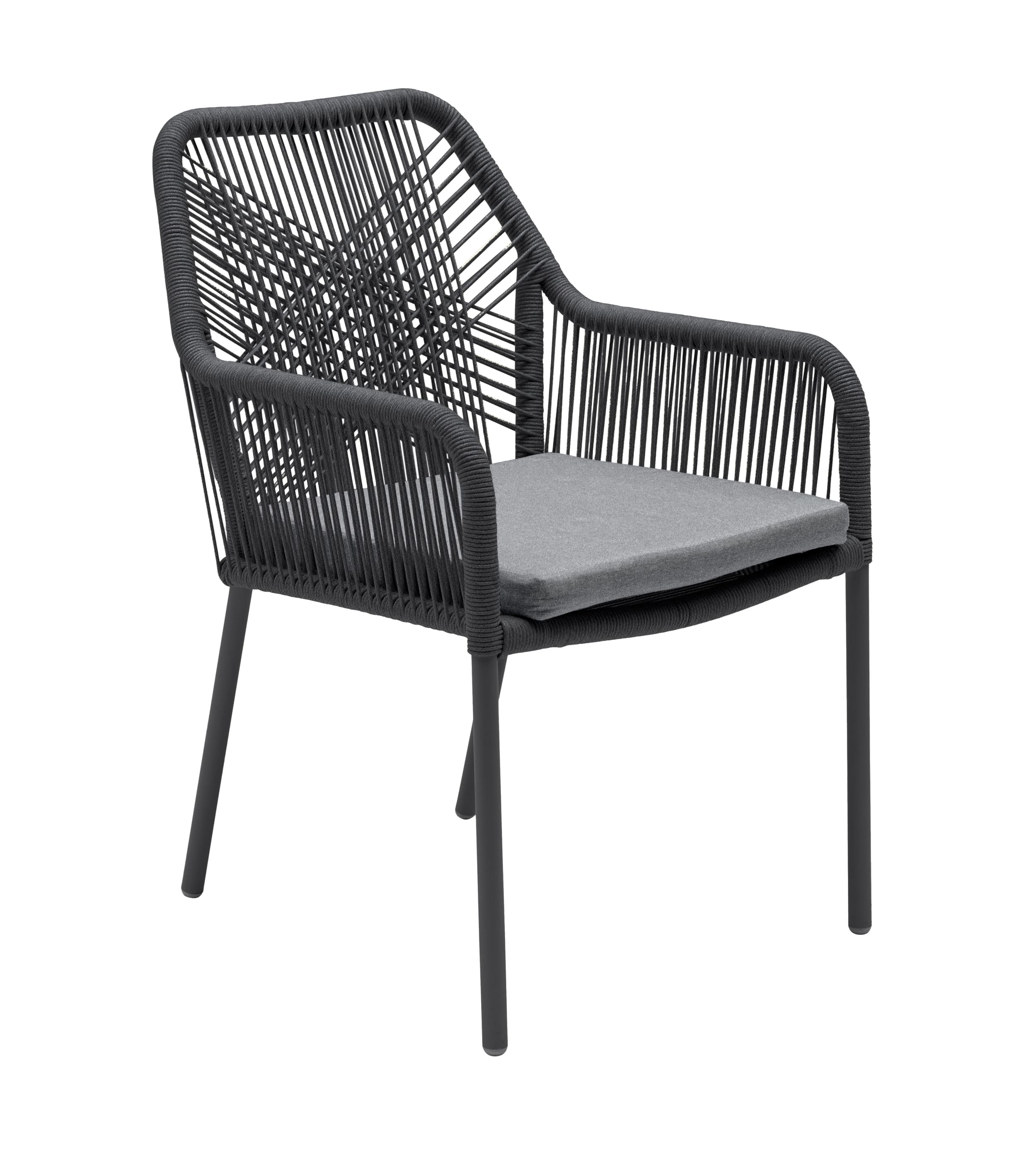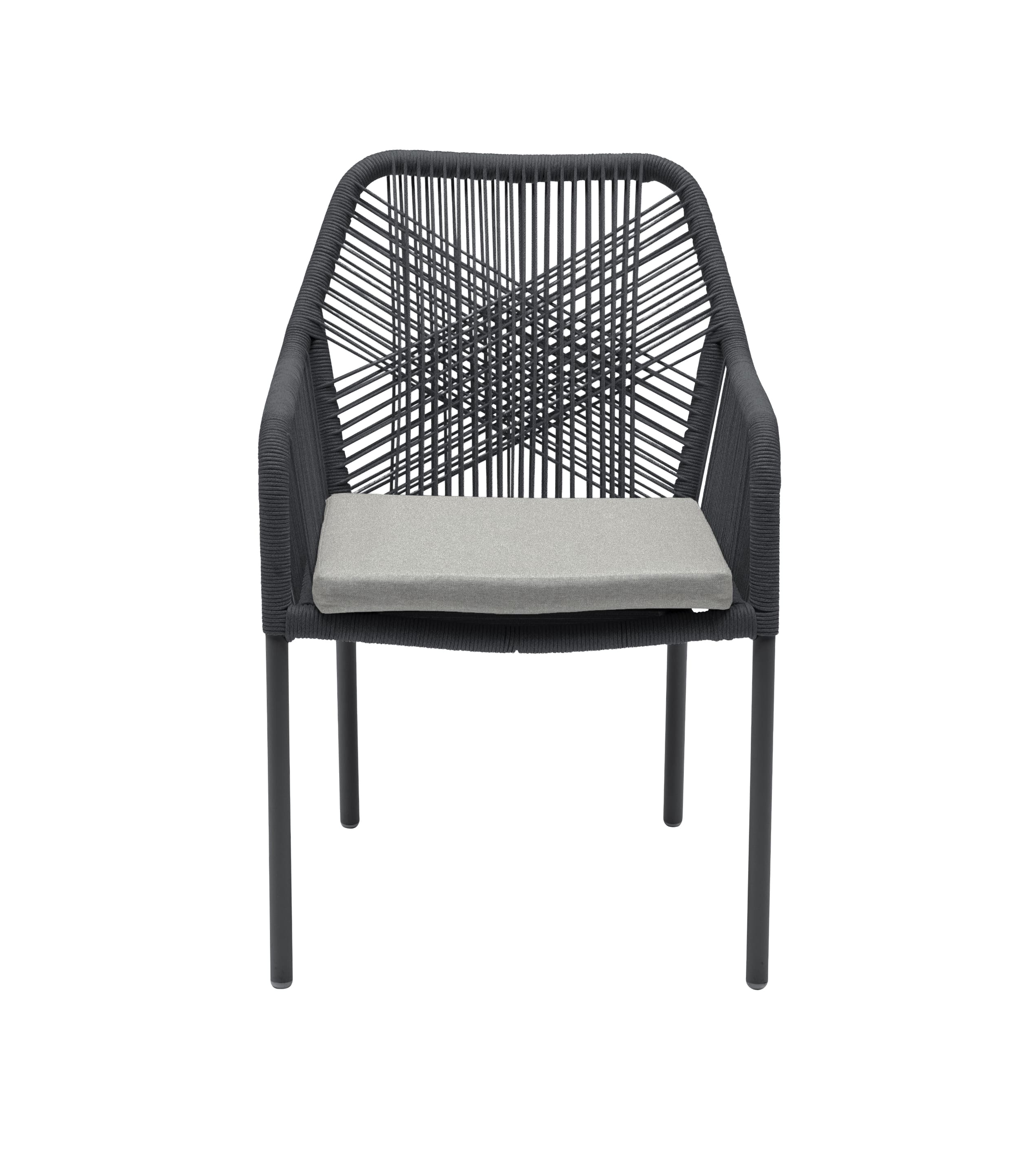 Die Stühle stehen auf einem stabilen Aluminiumgestell in Anthrazit und sind rundum mit einem Rope-Geflecht ummantelt. Das sieht nicht nur luftig und modern aus, sondern bietet auch angenehmen Halt und wirkt insgesamt sehr hochwertig. Für extra Komfort sind passende Sitzkissen bereits dabei. Und wenn mal Platz gebraucht wird: Die Stühle sind 2-fach stapelbar und lassen sich ganz unkompliziert verstauen.