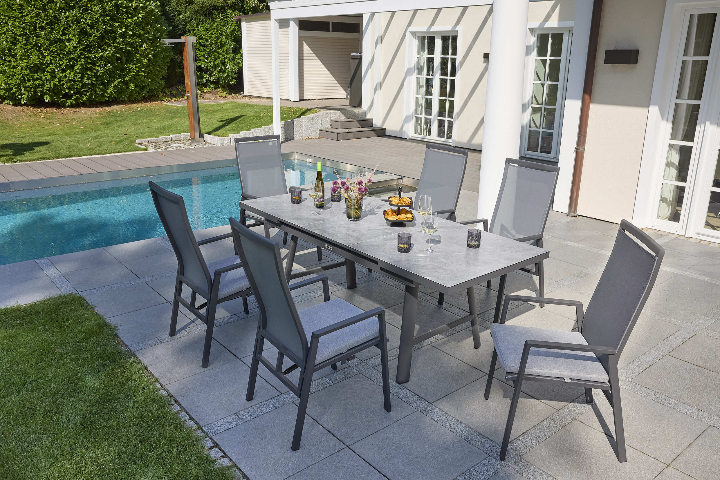 Kombinieren Sie diesen Artikel mit allen weiteren Möbeln von LC Garden. Die Rahmenfarbe und die Polster sind farblich und optisch bei allen anthrazit farbenden Möbeln identisch. Als Fachhändler beraten wir Sie gerne bei Fragen zur Zusammenstellung und erstellen Ihnen ein kosten- und bedarfsorientiertes Angebot. Beachten Sie bitte auch unsere attraktiven Setangebote.