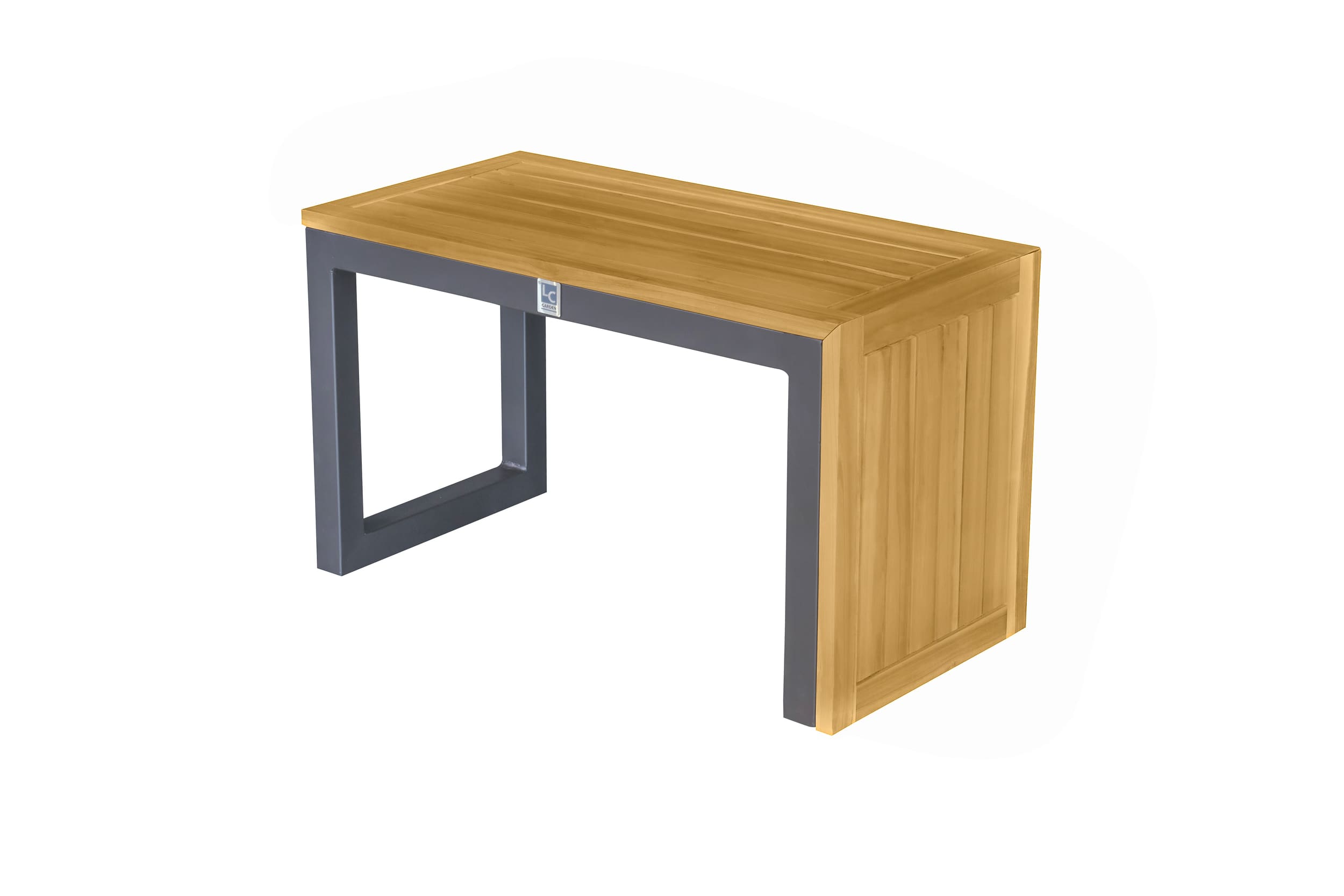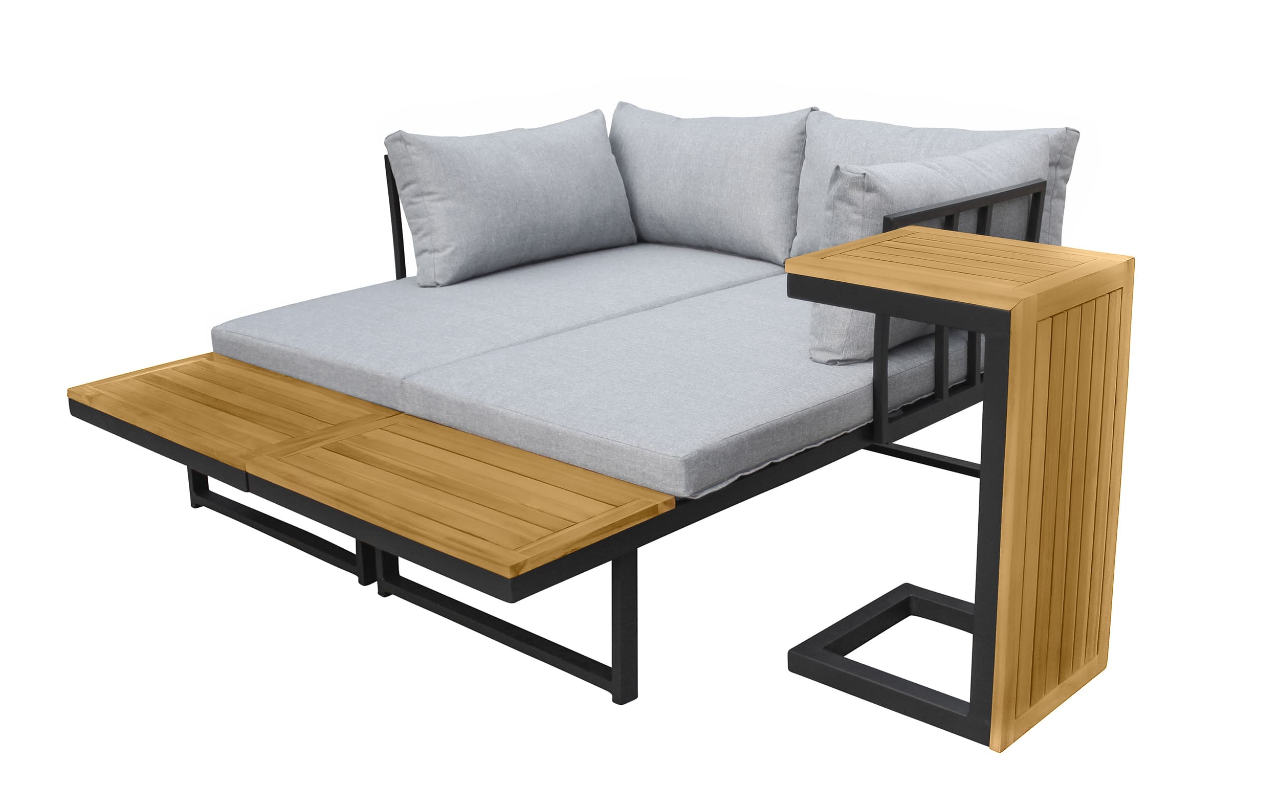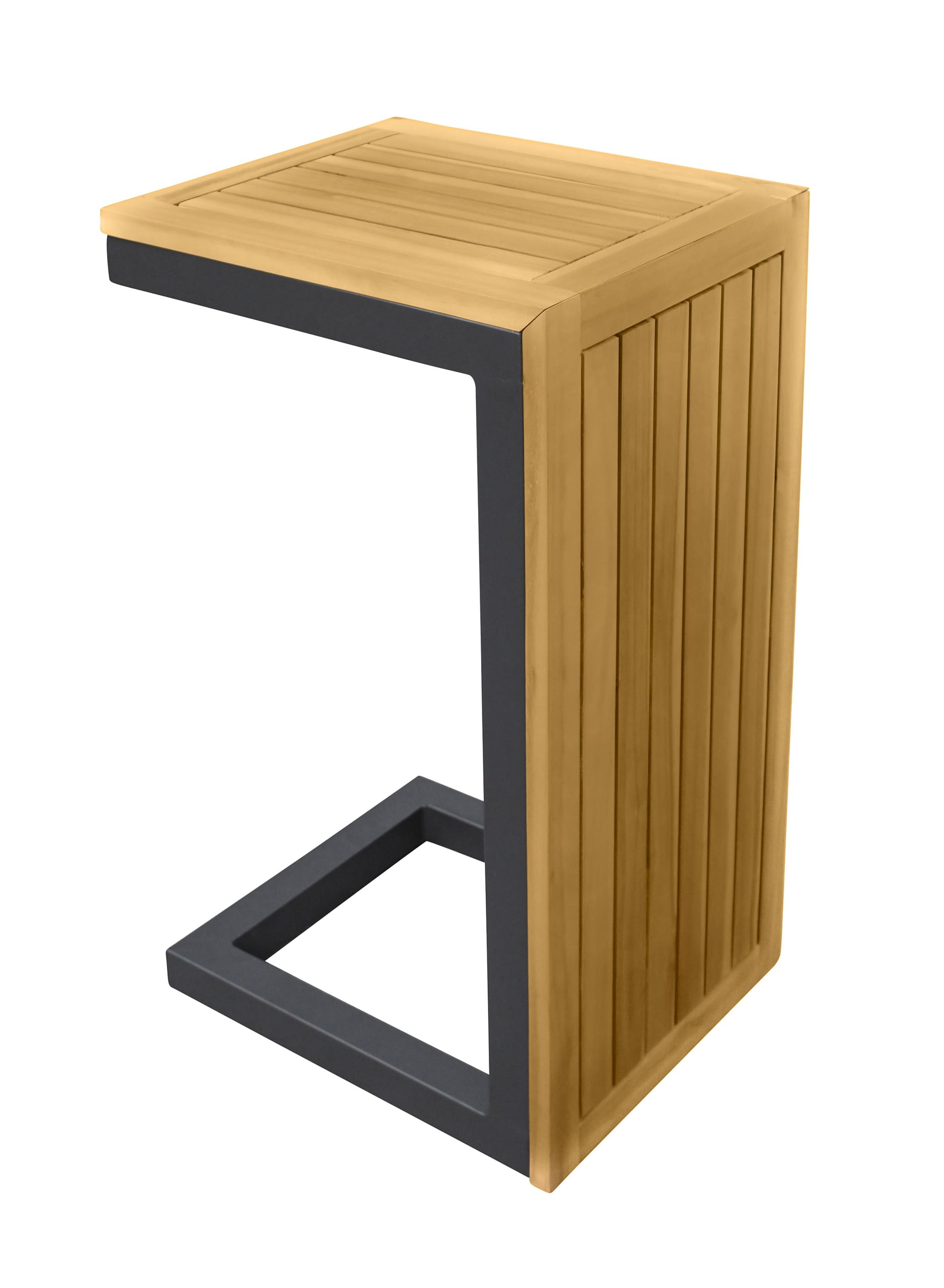 - Anthrazit farbiges Aluminiumgestell mit Ablageflächen aus massiver Akazie