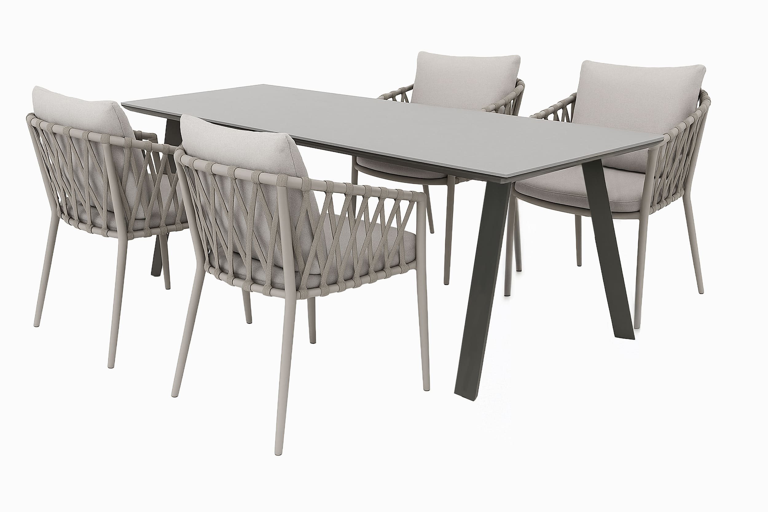 LC Garden Gartenset 5tlg. Gartentisch Sunrest 180x100cm + 4 Gartenstühle Aluminium | Rope | Polyrattan