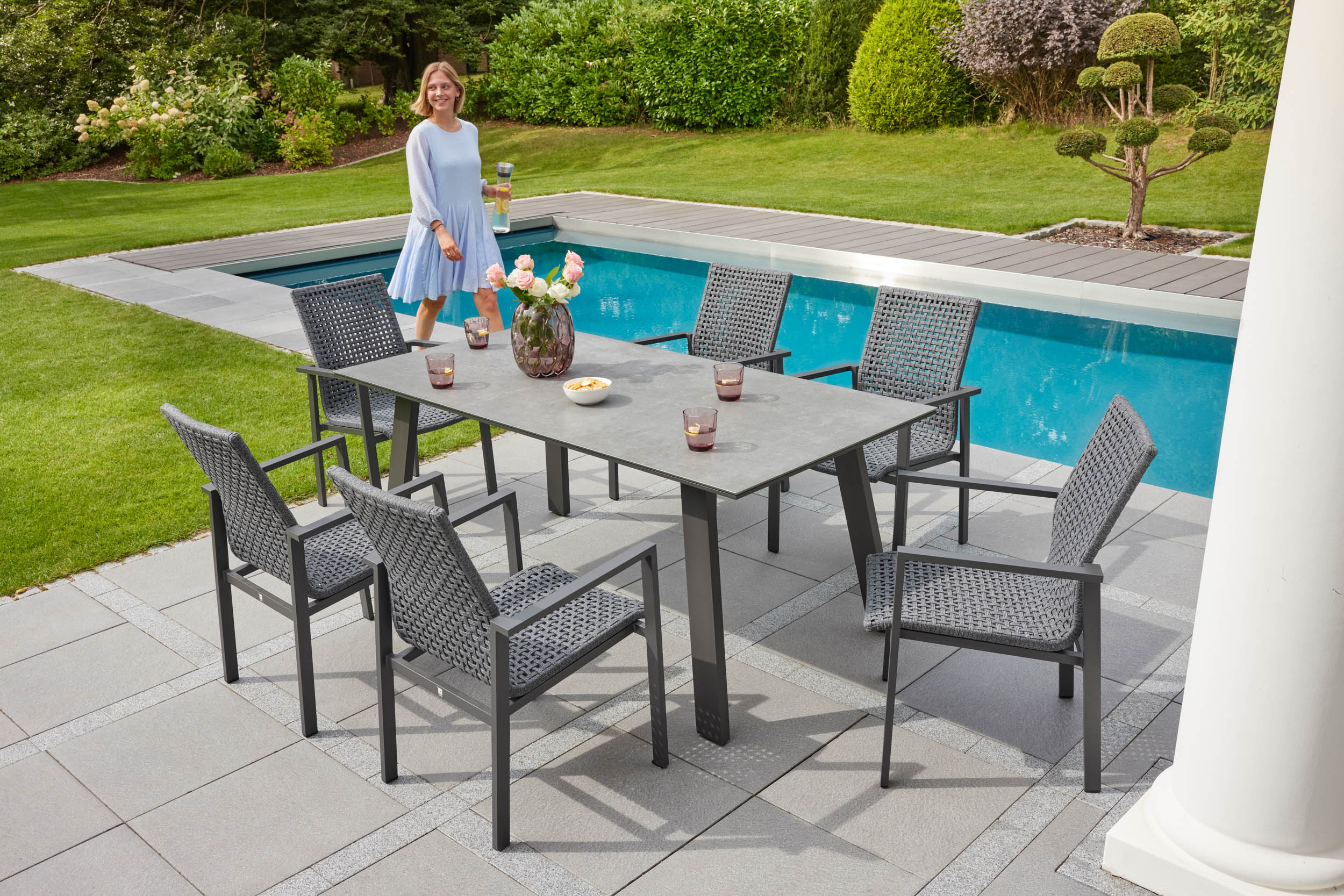 LC Garden »Sunrope« I Gartenset 7tlg. Anthrazit Esstisch 180x100cm Aluminium/Keramik + 6x Stapelstuhl Rope Sitzgruppe