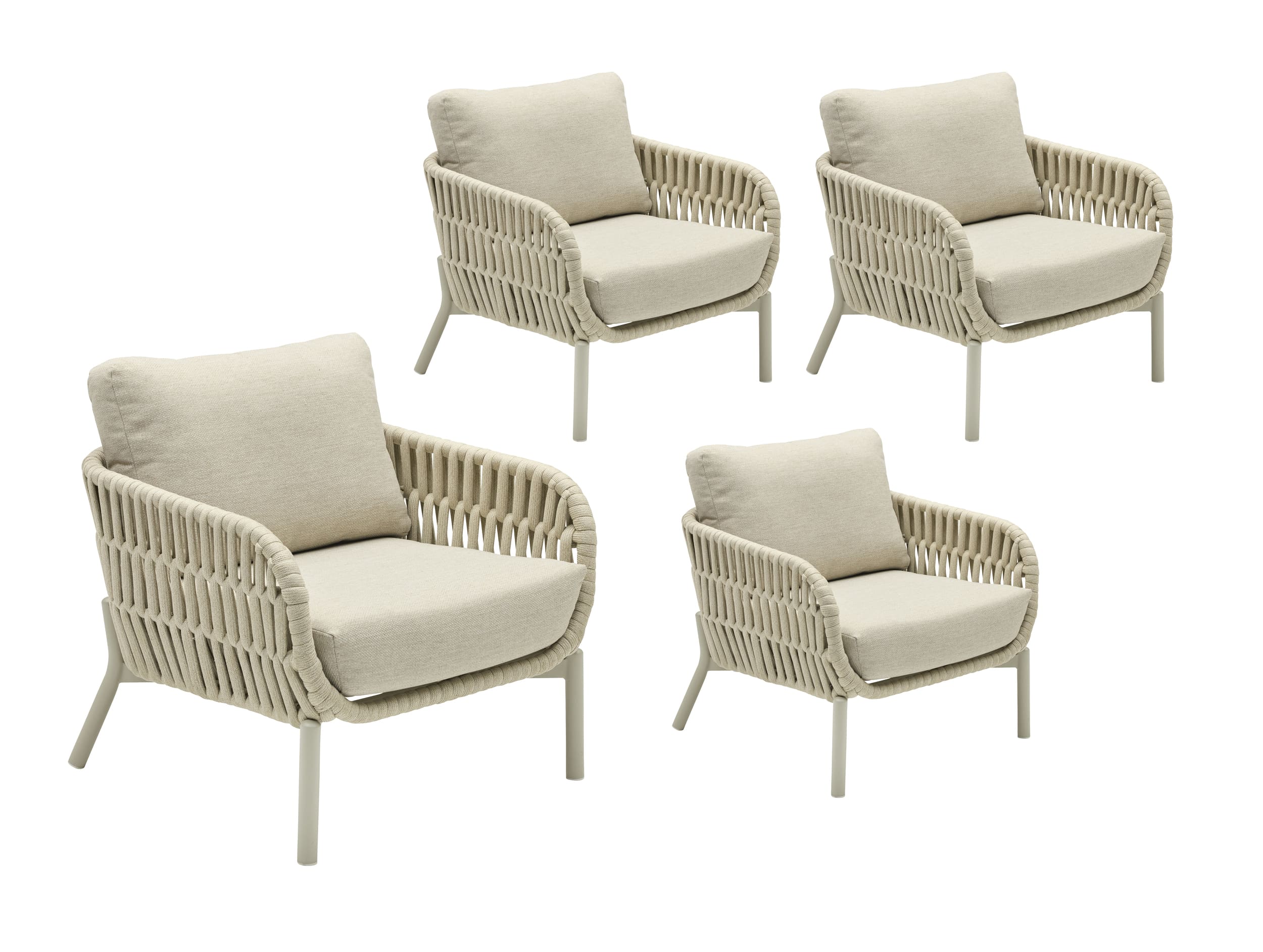 LC Garden »Terrano« 4er Set Gartensessel Rope Taupe Gartenstühle Loungesessel inkl. Sitzkissen