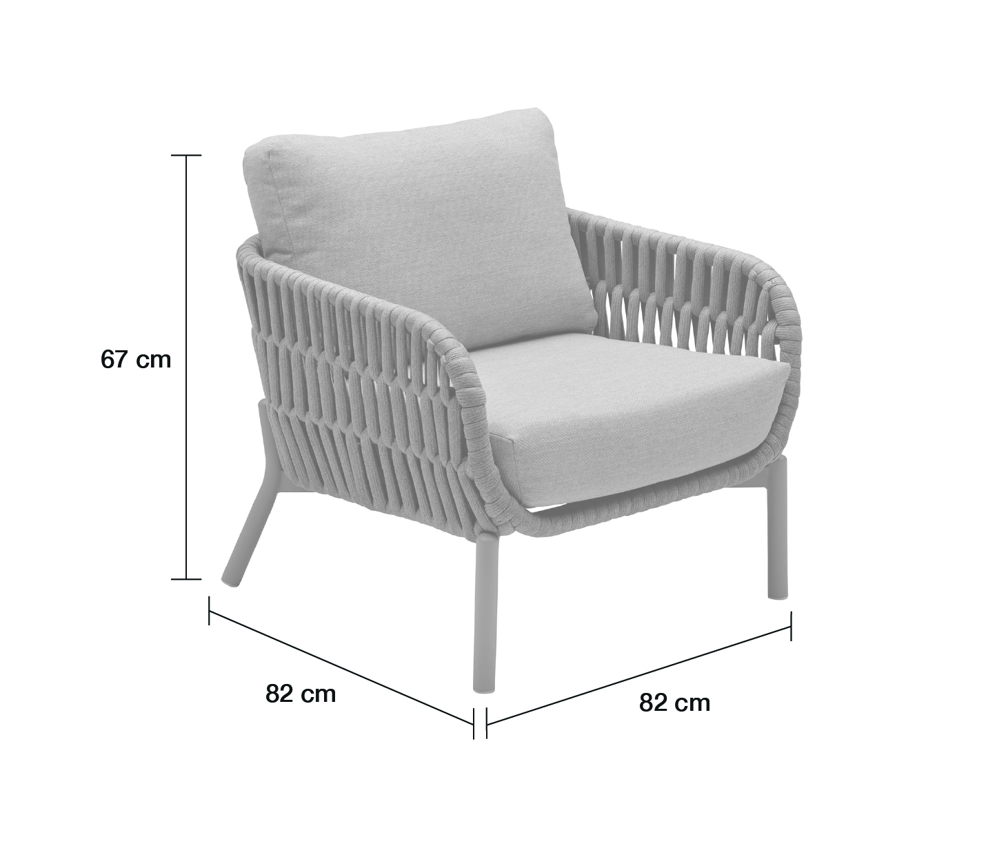 Das Aluminiumgestell sorgt für einen stabilen Stand, bleibt dabei aber angenehm leicht – ideal, wenn Sie den Stuhl flexibel umstellen möchten. Die umlaufende Bespannung aus 30 mm Rope gibt dem Sessel seinen markanten Look und fühlt sich gleichzeitig angenehm an. Für extra Komfort ist eine passende Olefin-Auflage bereits inklusive – perfekt für lange Sommerabende, gemütliche Kaffeerunden oder entspannte Lesestunden im Freien.