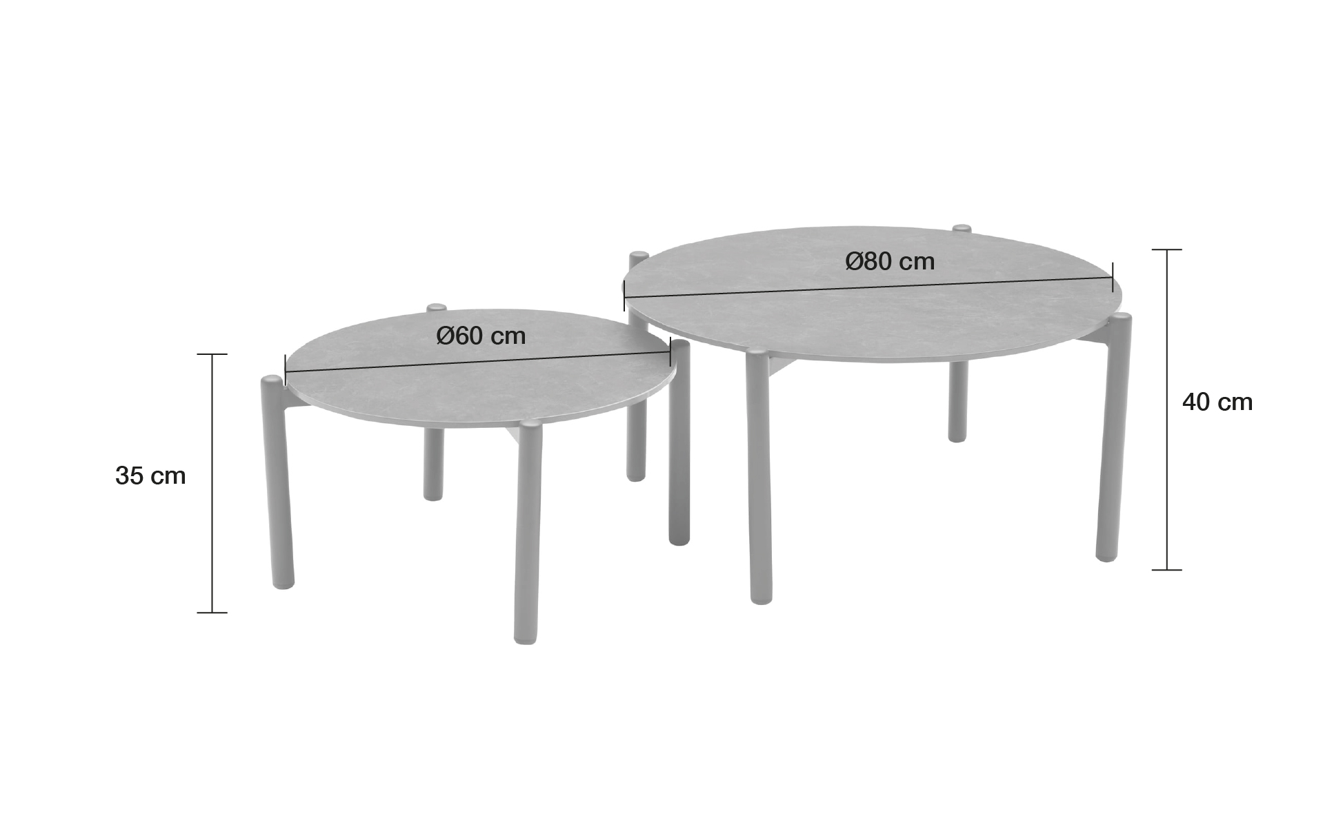 - Praktisches Design: Zwei unterschiedlich große Tische, die flexibel platziert oder platzsparend ineinandergeschoben werden können