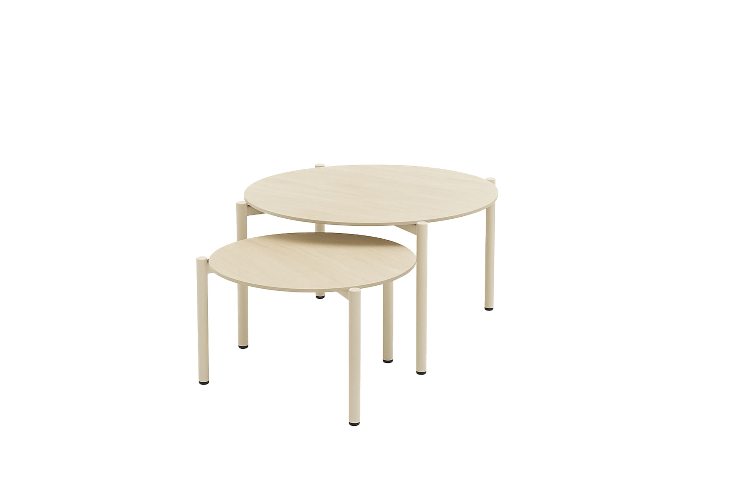 - Praktisches Design: Zwei unterschiedlich große Tische, die flexibel platziert oder platzsparend ineinandergeschoben werden können