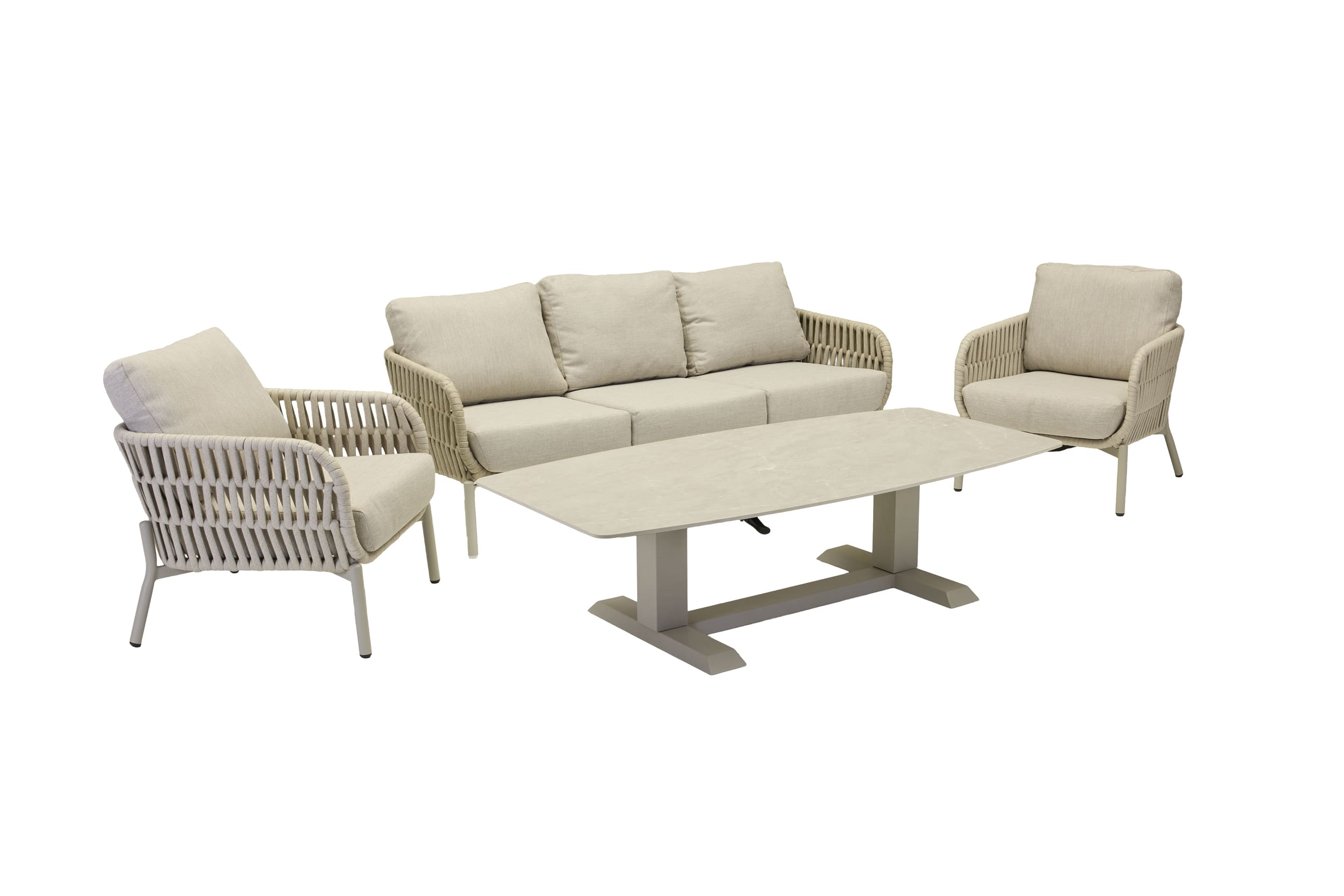 LC Garden »Terrano« Gartenset Taupe Gartentisch 180cm höhenverstellbar + Gartensofa + Gartensessel Rope