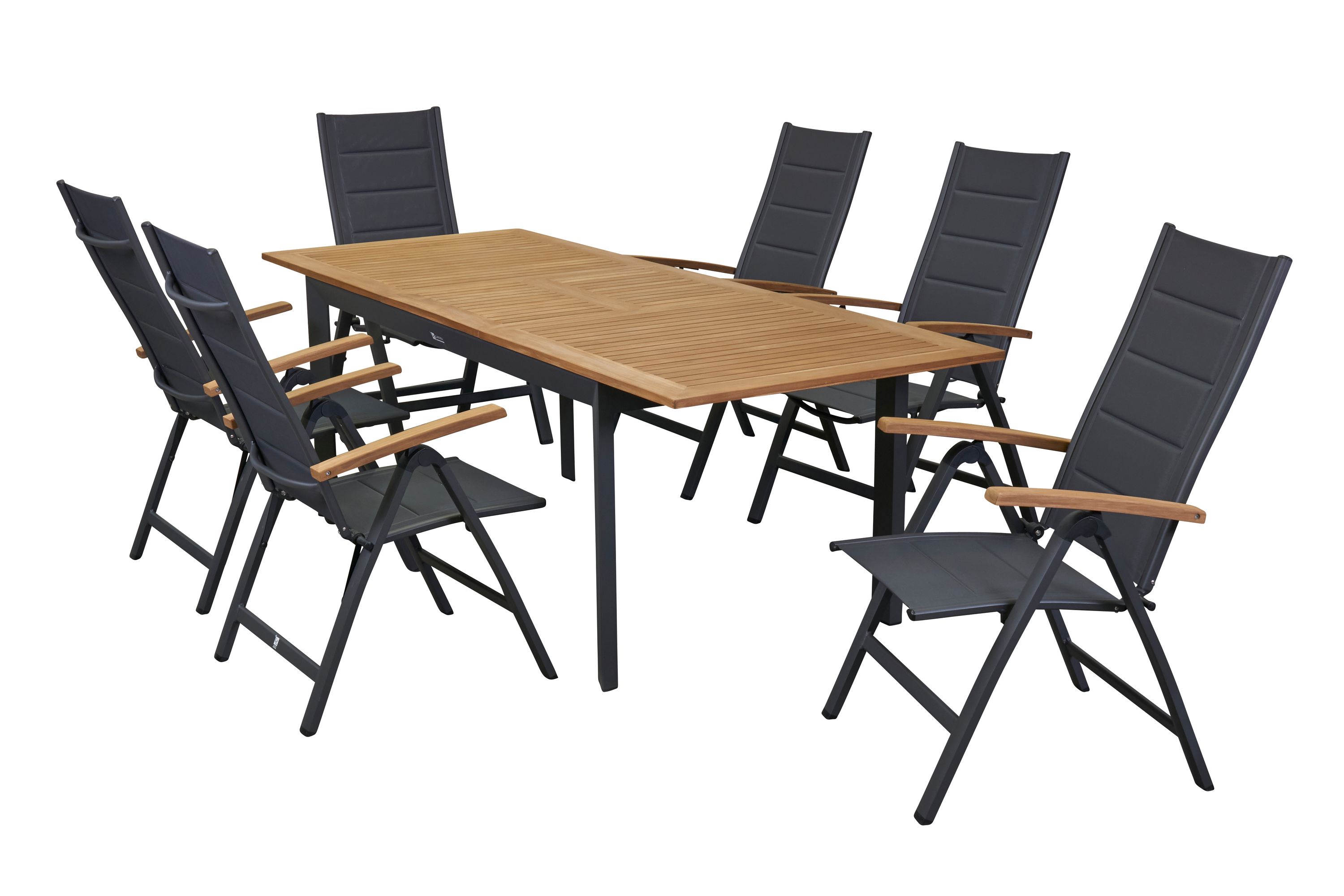 LC Garden »Unicamo« anthrazit/Teak Dining Set I 7tlg. Sitzgruppe Textilen Gartenset