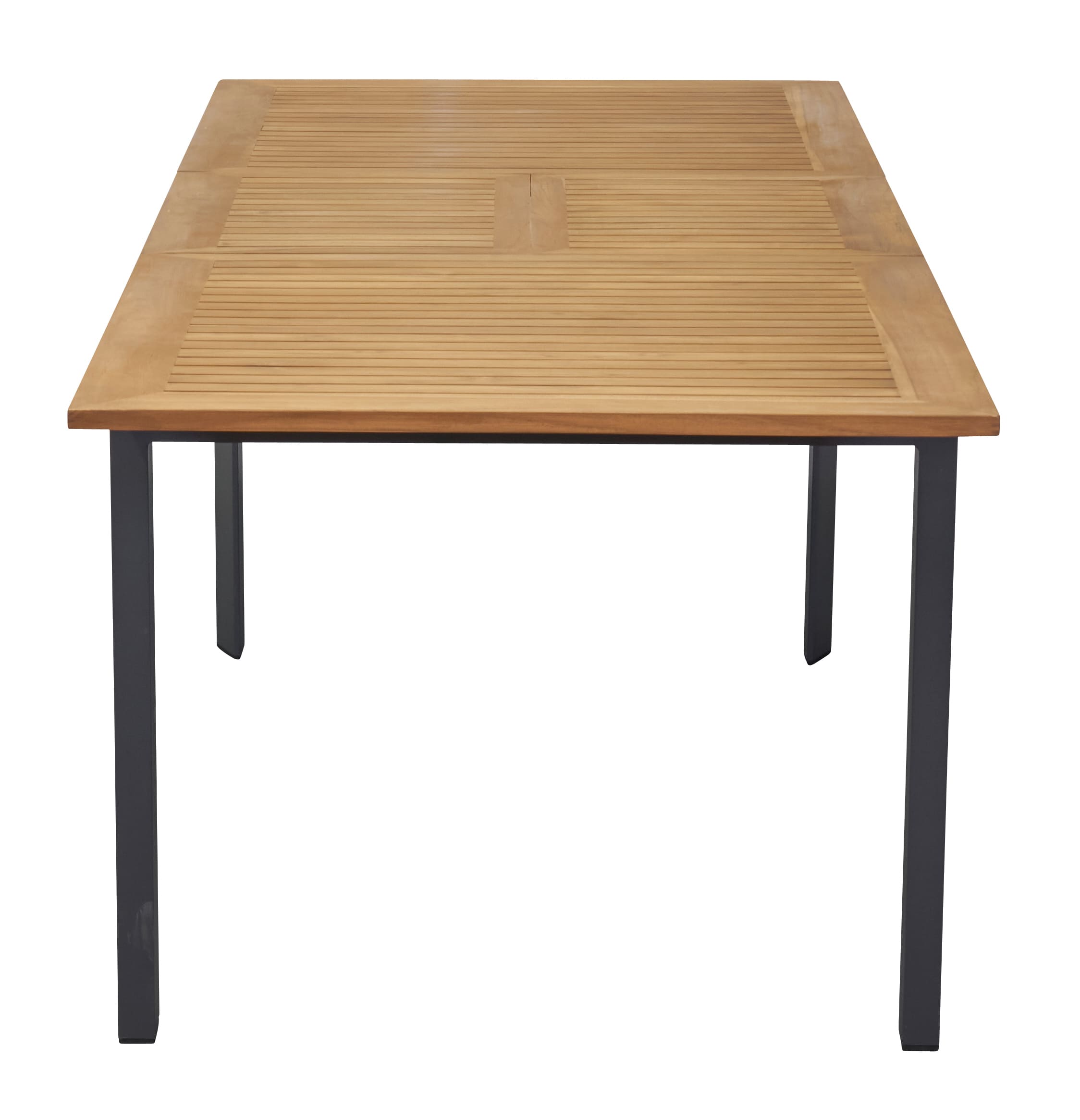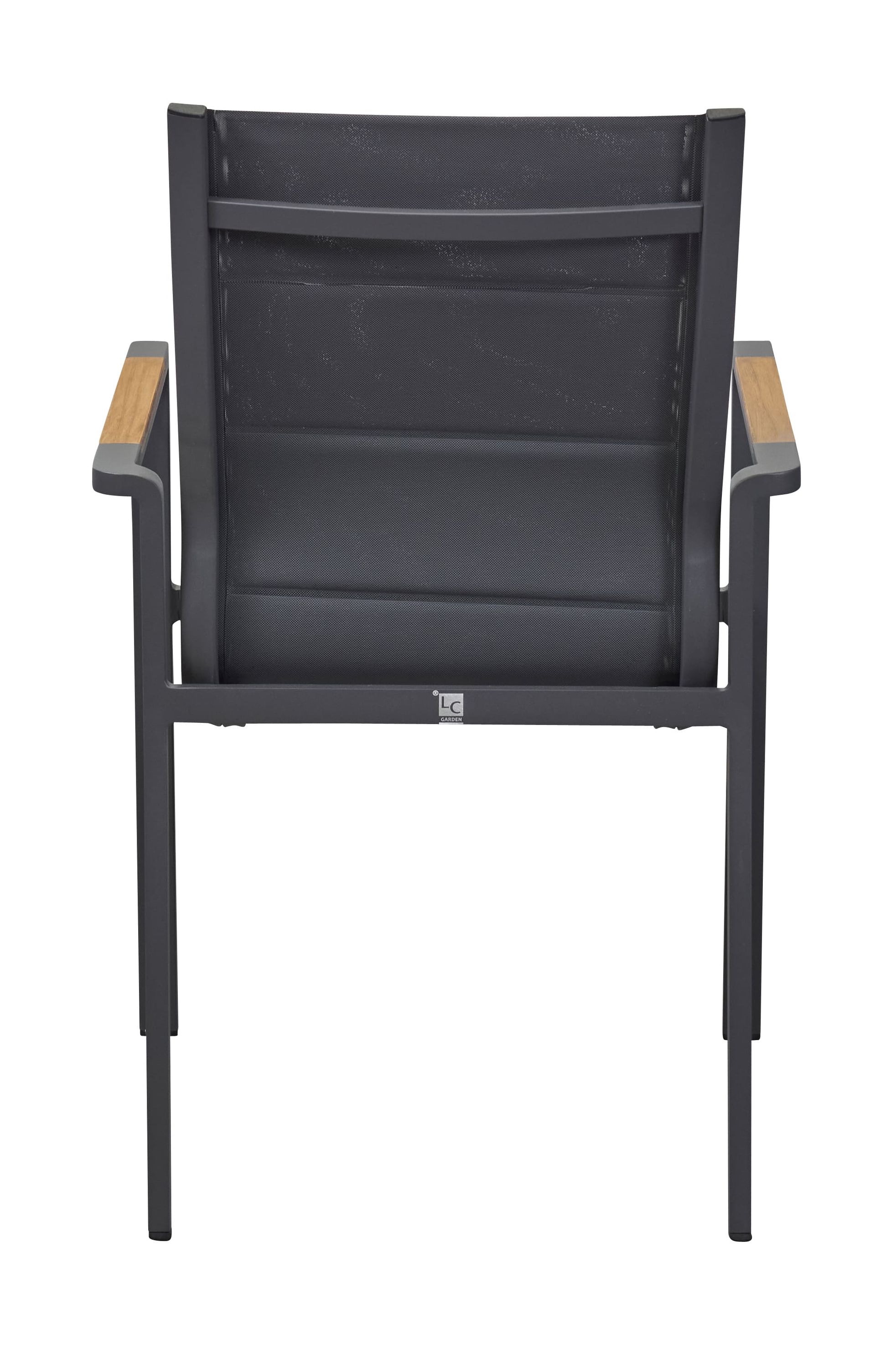Die neue Möbelserie Unicamo von LC Garden hat mit dem Unicamo Dining Set II in anthrazit einen weiteren Zuwachs bekommen. Das Unicamo Dining Set II besteht aus sechs Stapelstühlen und einem von 180cm auf 240cm ausziehbaren Esstisch. Mit seiner Tischplatte aus Teakholz natur ist der Gartentisch nicht nur variabel und praktisch, sondern ist gleichzeitig ein echter Hingucker auf Ihrer Terrasse. Das robuste und langlebige Teakholz, in Kombination mit dem anthrazitfarbenen Gestell aus Aluminium, strahlt Wertigkeit und Modernität aus, die Ihre Gäste zu schätzen wissen. Die pflegeleichte Tischplatte entspricht damit einer natürlichen Allwetterplatte, die auch gegen Schnee und Frost resistent ist, sofern sie naturbelassen bleibt. Der gepolsterte Gartenstuhl aus anthrazitfarbenem Aluminium überzeugt durch eine hohe Verarbeitung und Langlebigkeit. Ein besonderes Highlight ist die Armlehne aus Teakholz. Die wasserdurchlässige anthrazitfarbene Sitzfläche besteht aus hochwertigem Outdoorgewebe, welches kein Wasser aufnimmt. Dank der leichten Materialien und der stapelbaren Funktion, lässt sich der Gartenstuhl bei Bedarf platzsparend verstauen.
