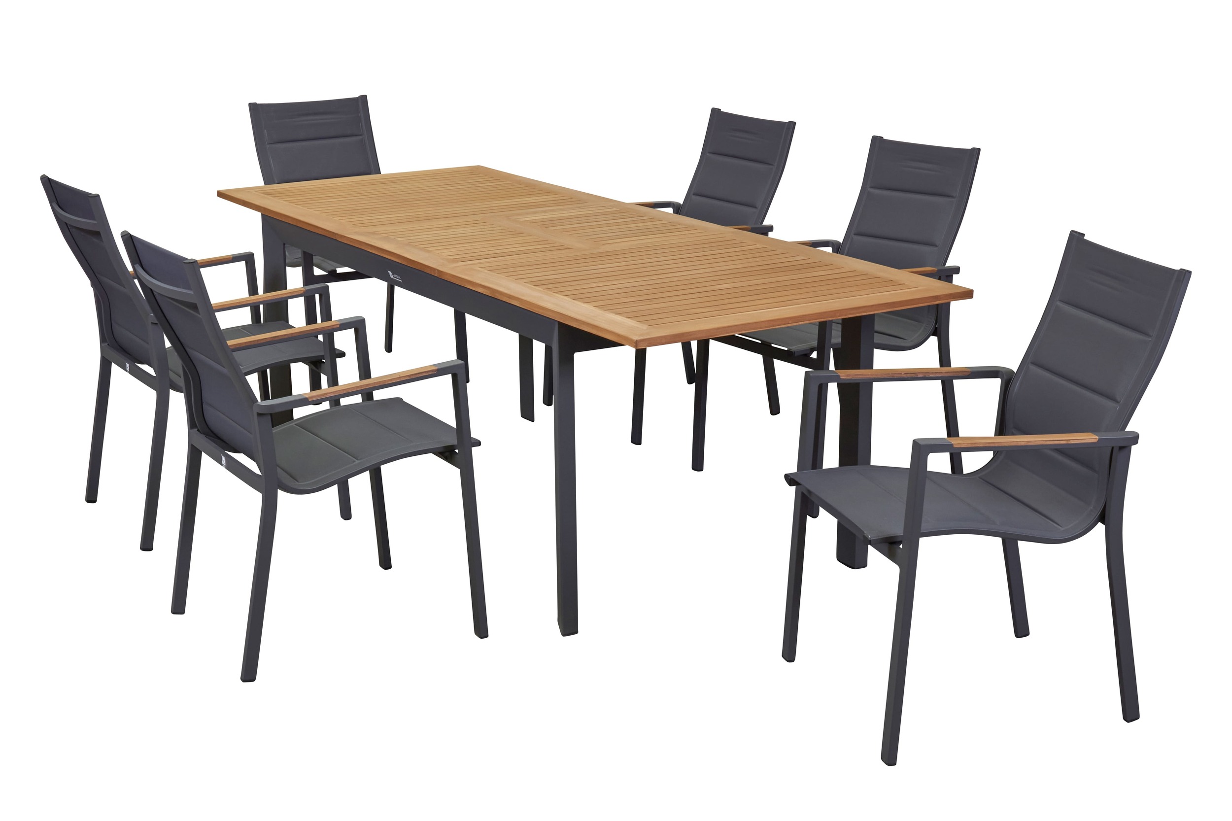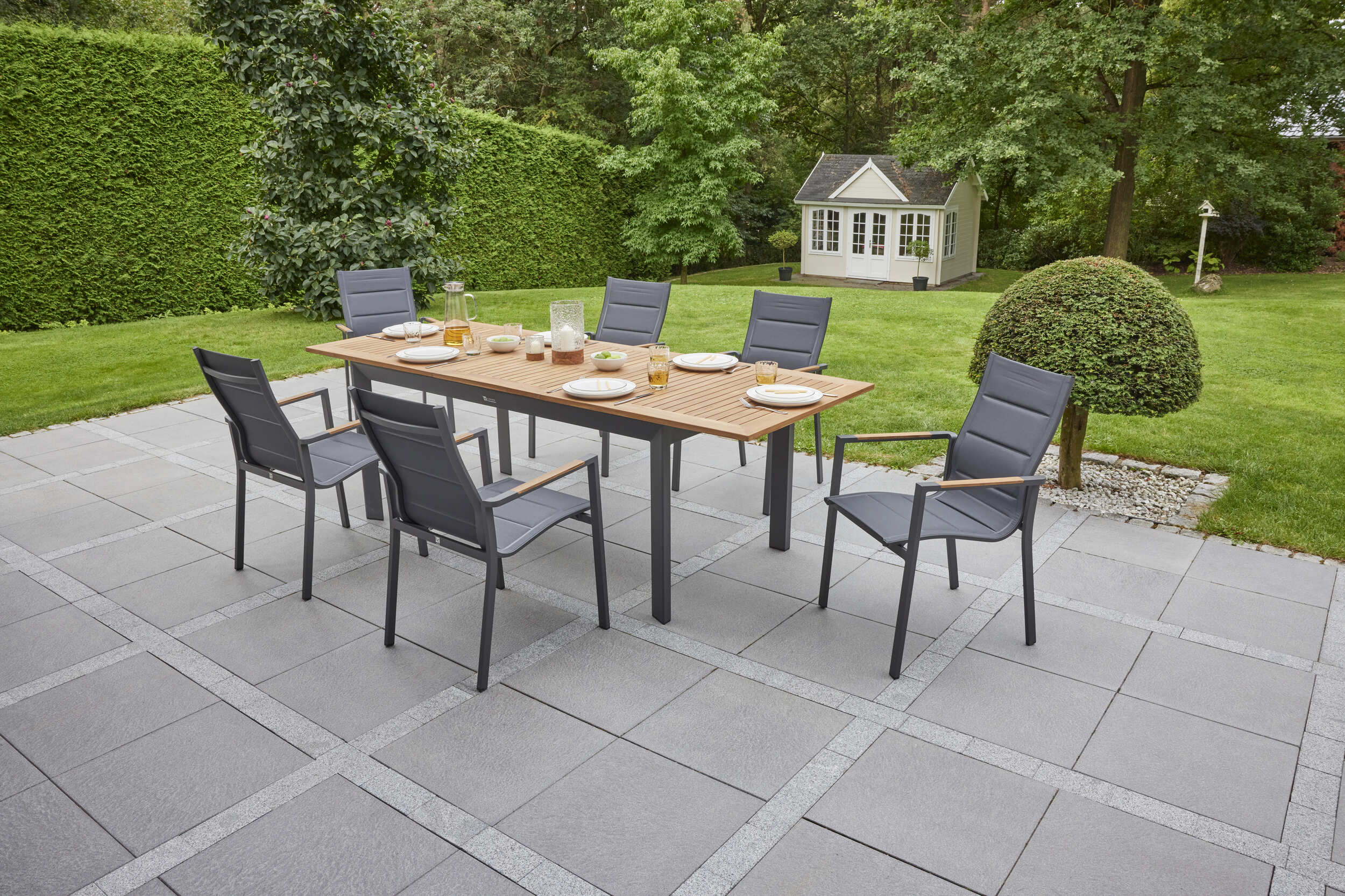 LC Garden »Unicamo« anthrazit/Teak Dining Set II 7tlg. Sitzgruppe Textilen Gartenset
