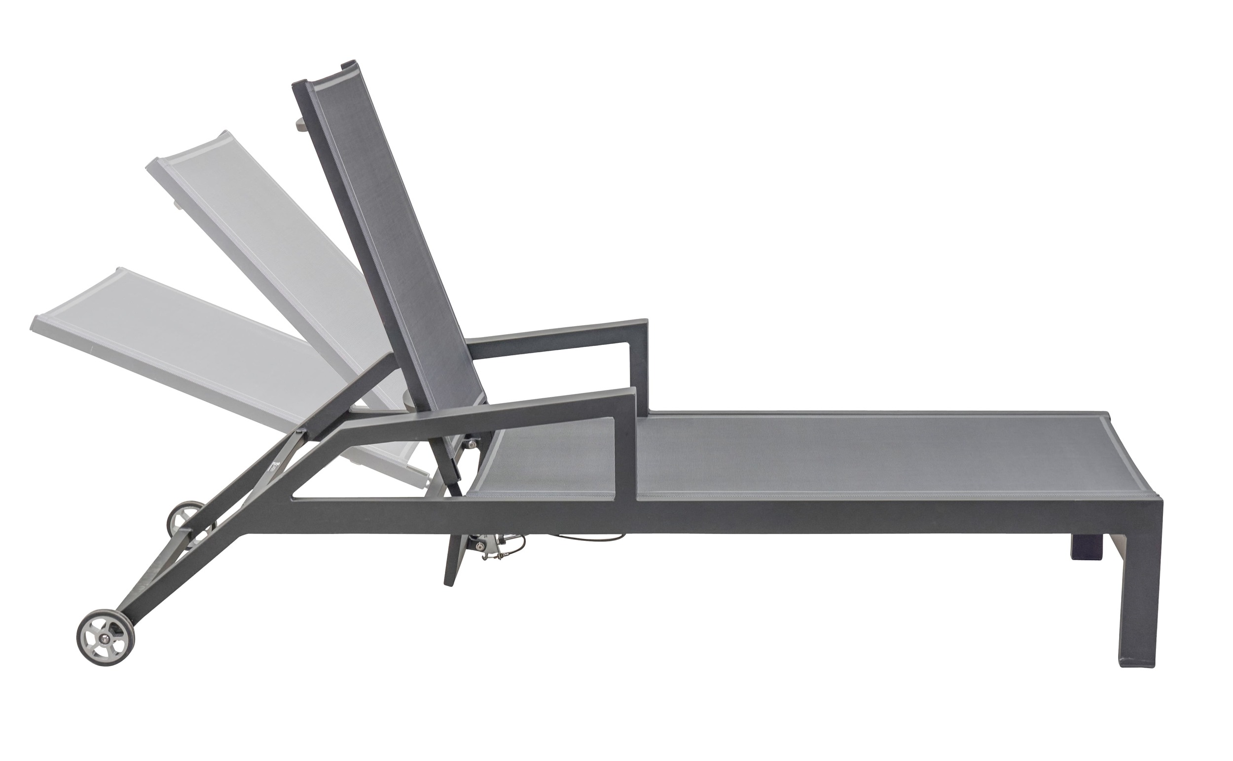 - Rückenverstellbare Sonnenliege mit Textilen Auflage für eine jederzeit optimale Sitzposition.