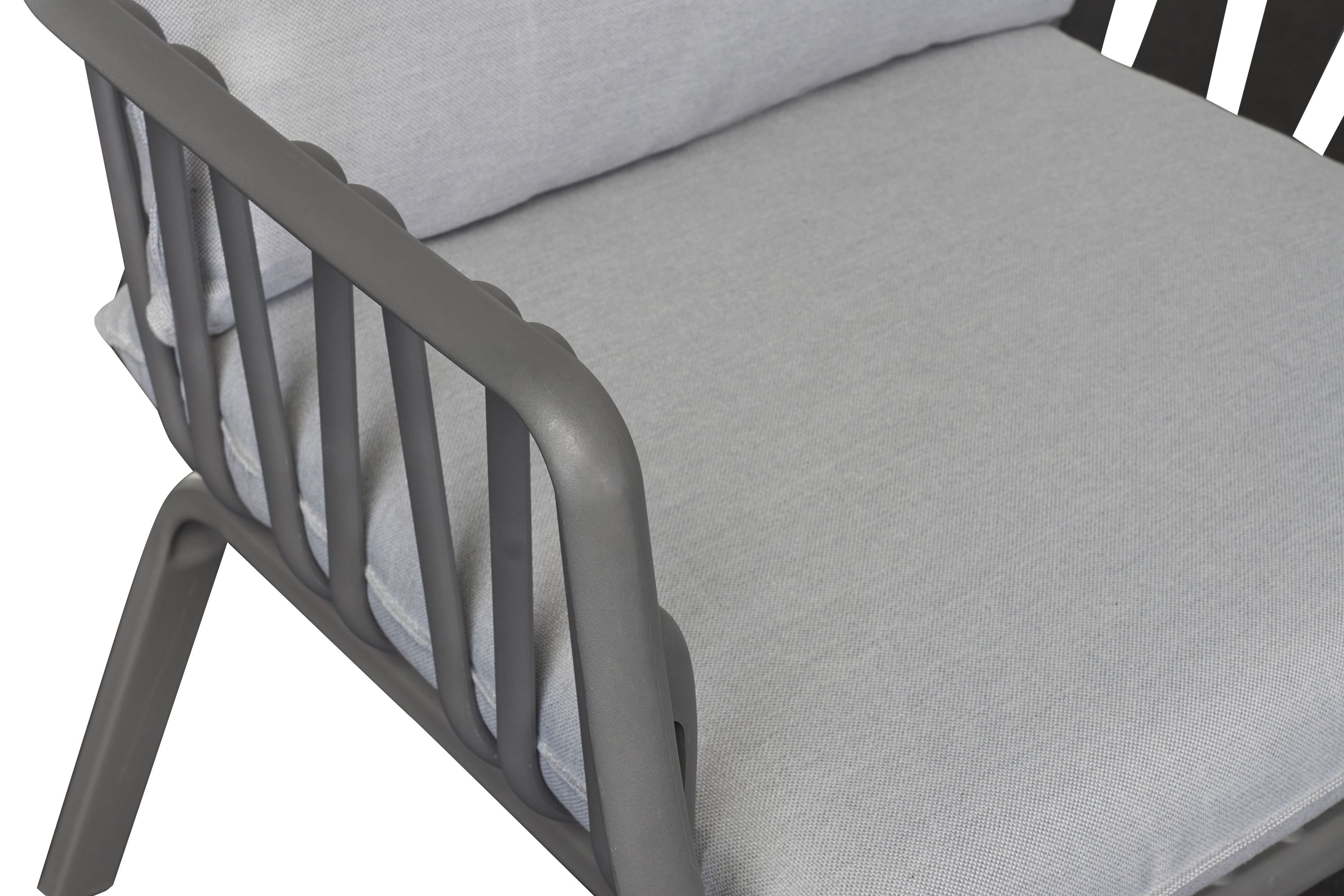 - Modernes Design & Komfort: Stilvolle Optik in elegantem Grau mit offenen Armlehnen, ergonomischer Form und bequemen, abnehmbaren Sitz- und Rückenkissen.