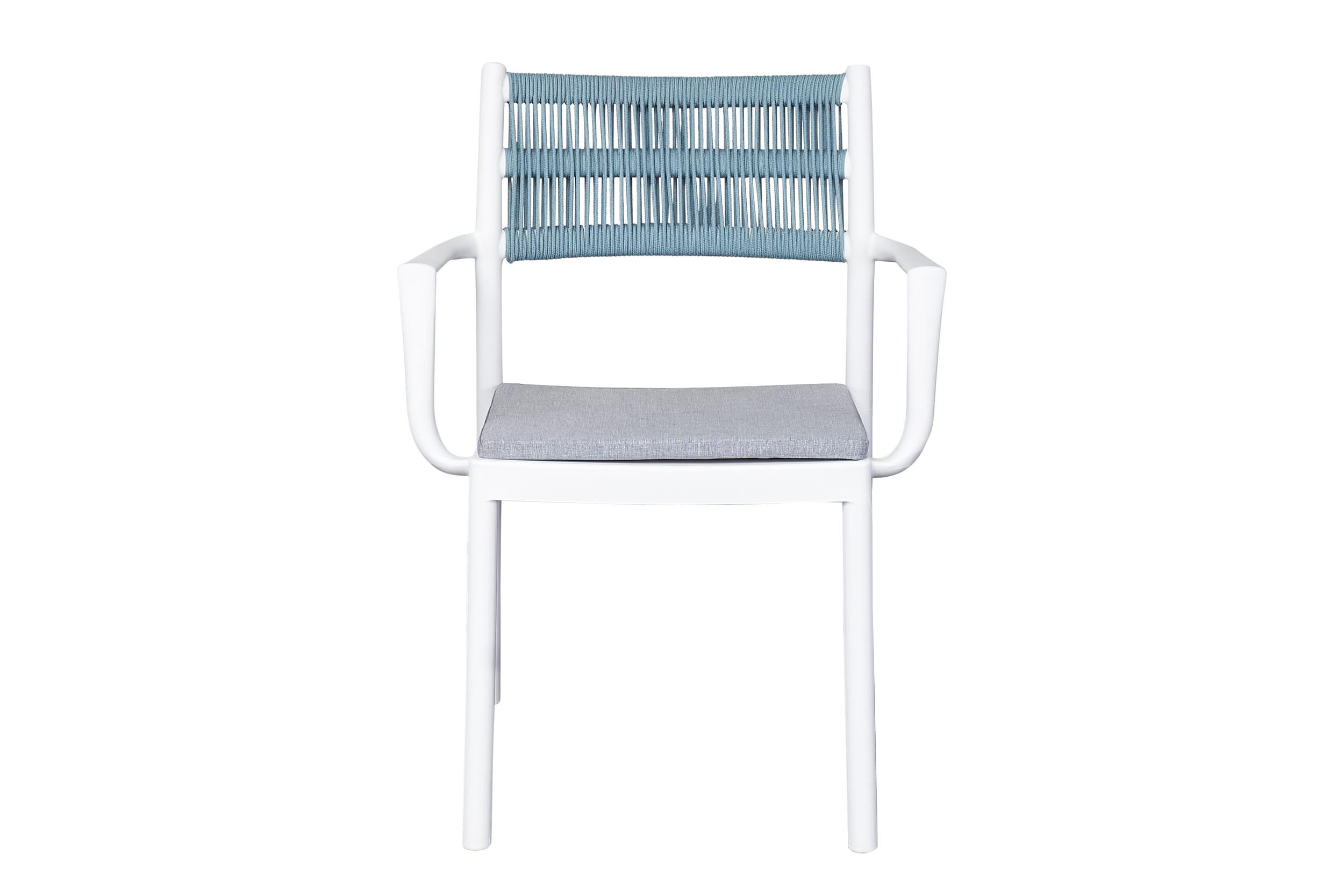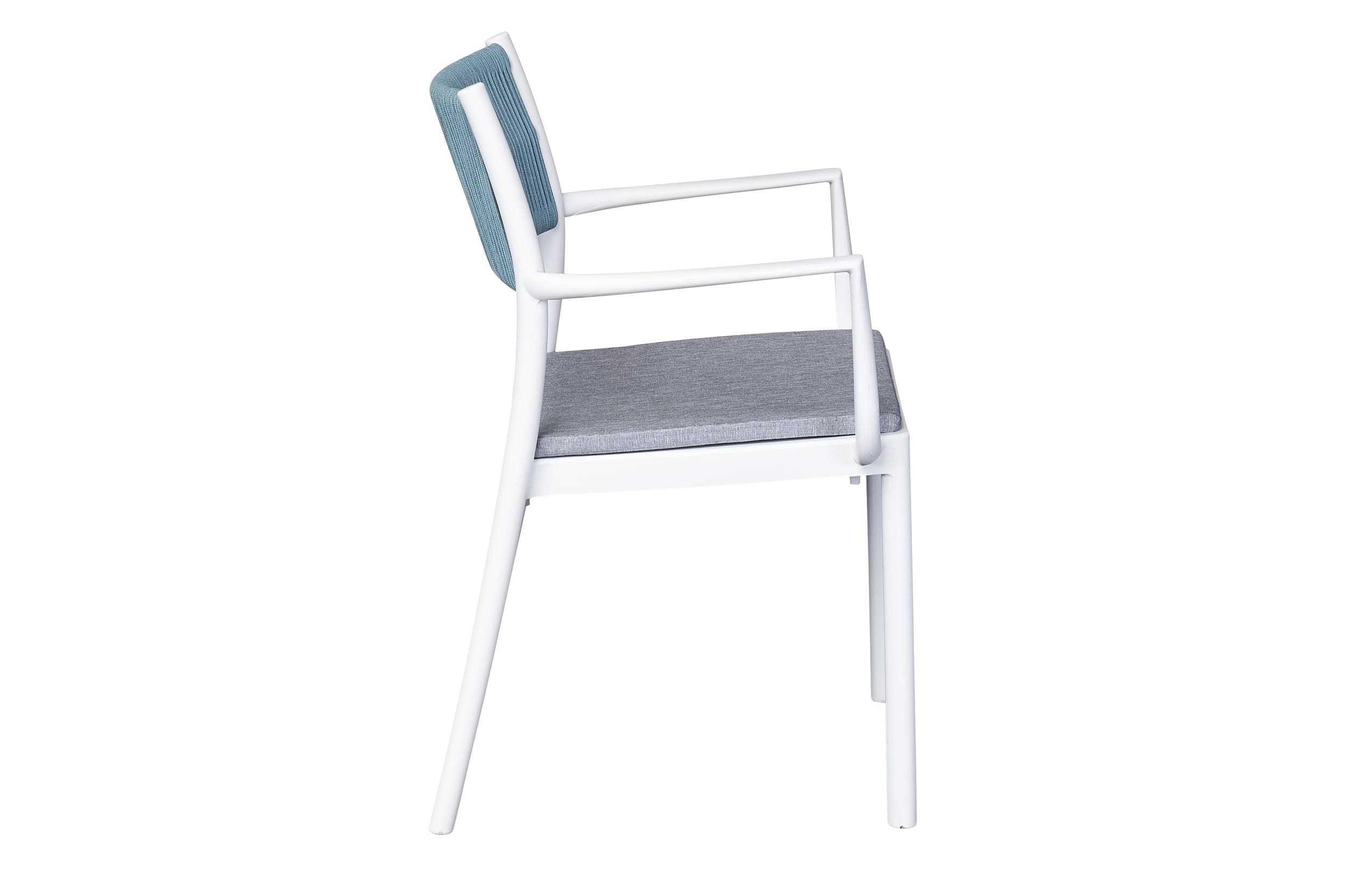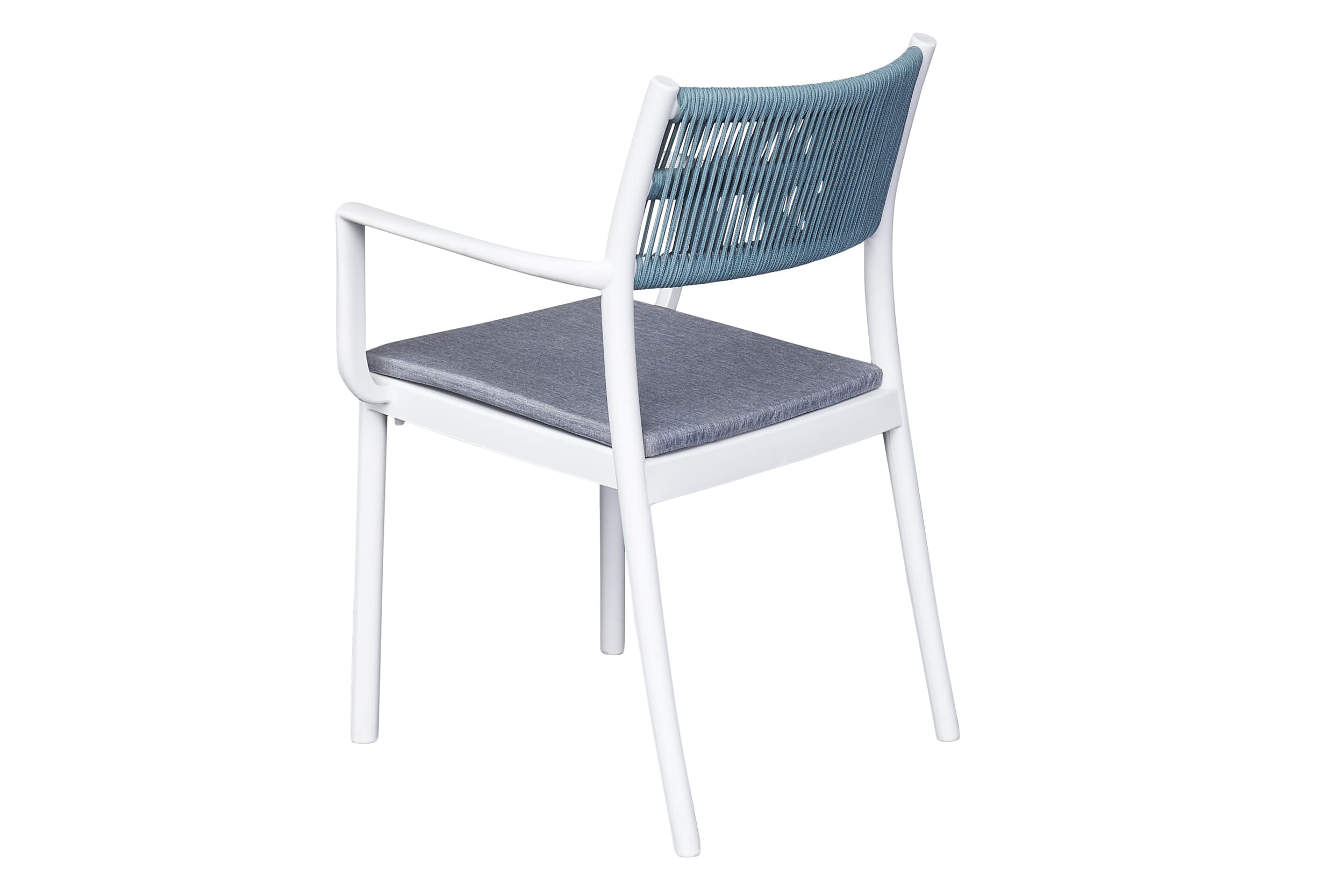 Der großzügige Tisch bietet Platz für gemütliche Mahlzeiten oder entspannte Nachmittage mit Freunden und Familie, während die ergonomischen Stühle mit bequemen Sitzpolstern maximalen Komfort garantieren. Das minimalistische Design in zeitlosem Weiß und Blau fügt sich harmonisch in jede Umgebung ein und verleiht Ihrem Outdoor-Bereich eine einladende Atmosphäre.