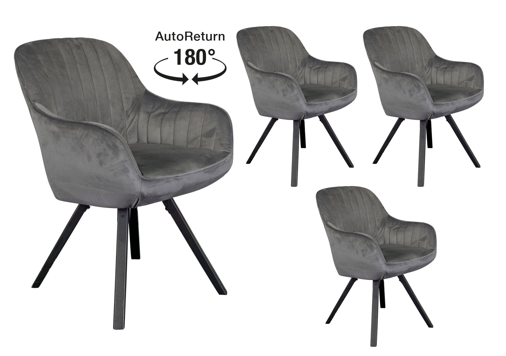 LC Home 4er Set Esszimmerstuhl Drehstuhl »Trevina« Samt Dunkelgrau Polsterstuhl