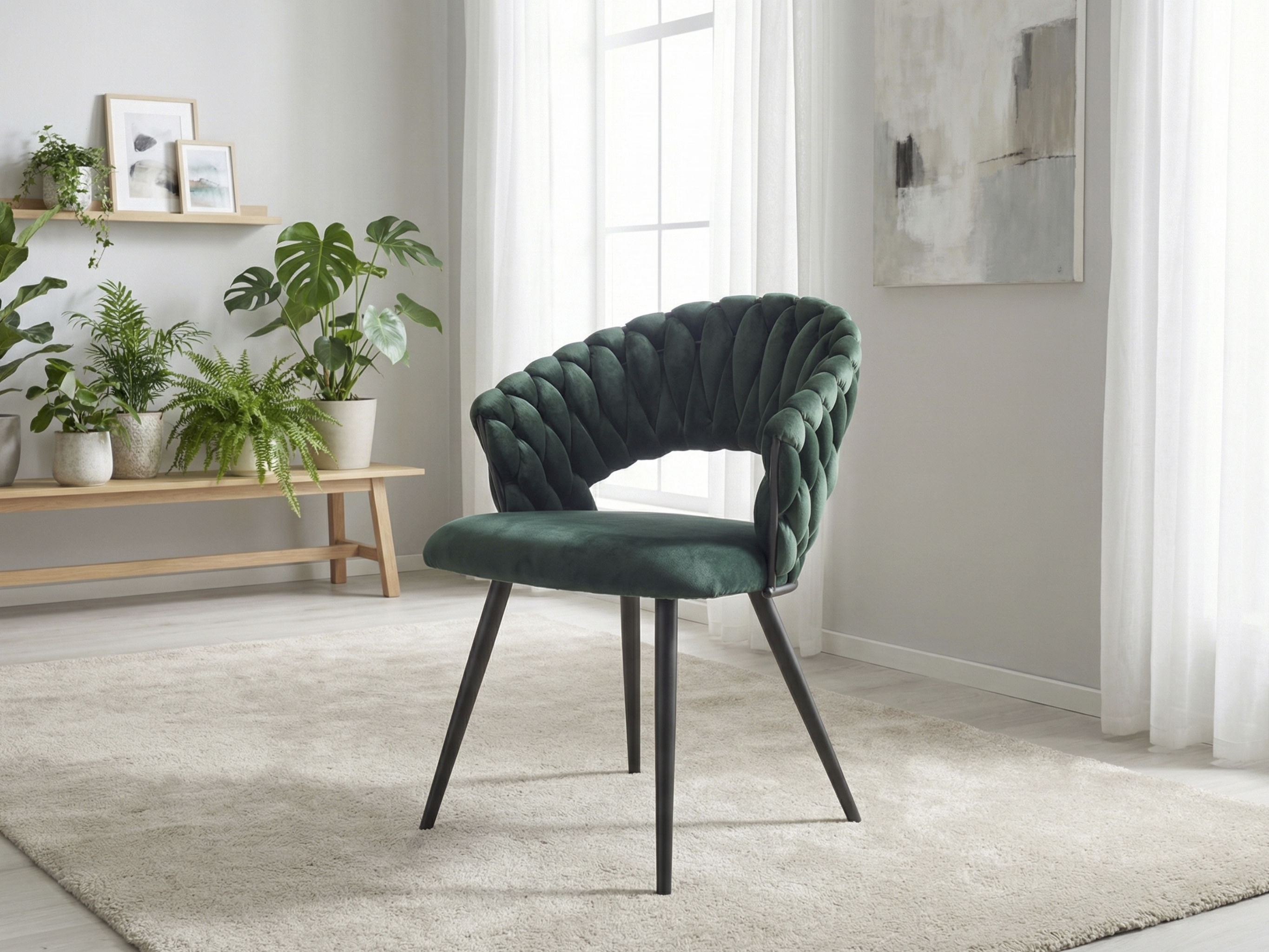 LC Home 4er Set Esszimmerstuhl »Nancy« Flechtoptik Samt grün Armlehnstuhl Designerstuhl