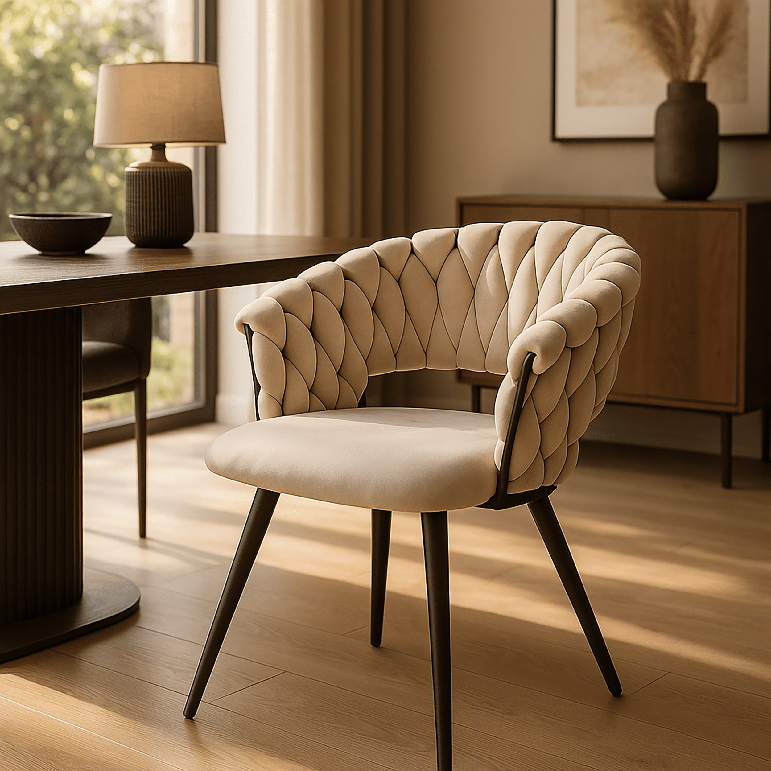 - Gepolsterte Sitz- und Rückenlehne in Flechtoptik