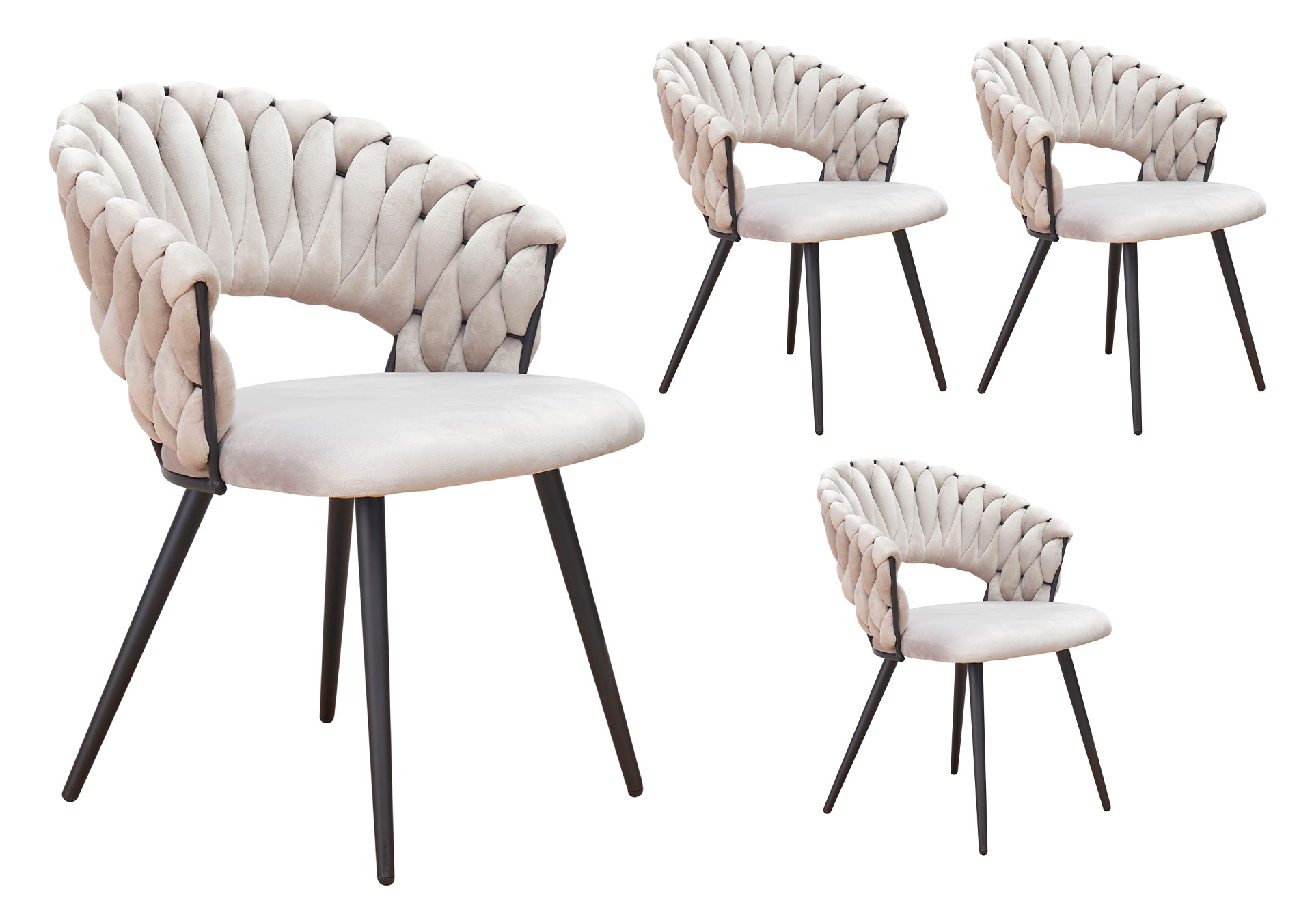 LC Home 4er Set Esszimmerstuhl »Nancy« Flechtoptik Samt hellgrau / taupe Armlehnstuhl Designerstuhl