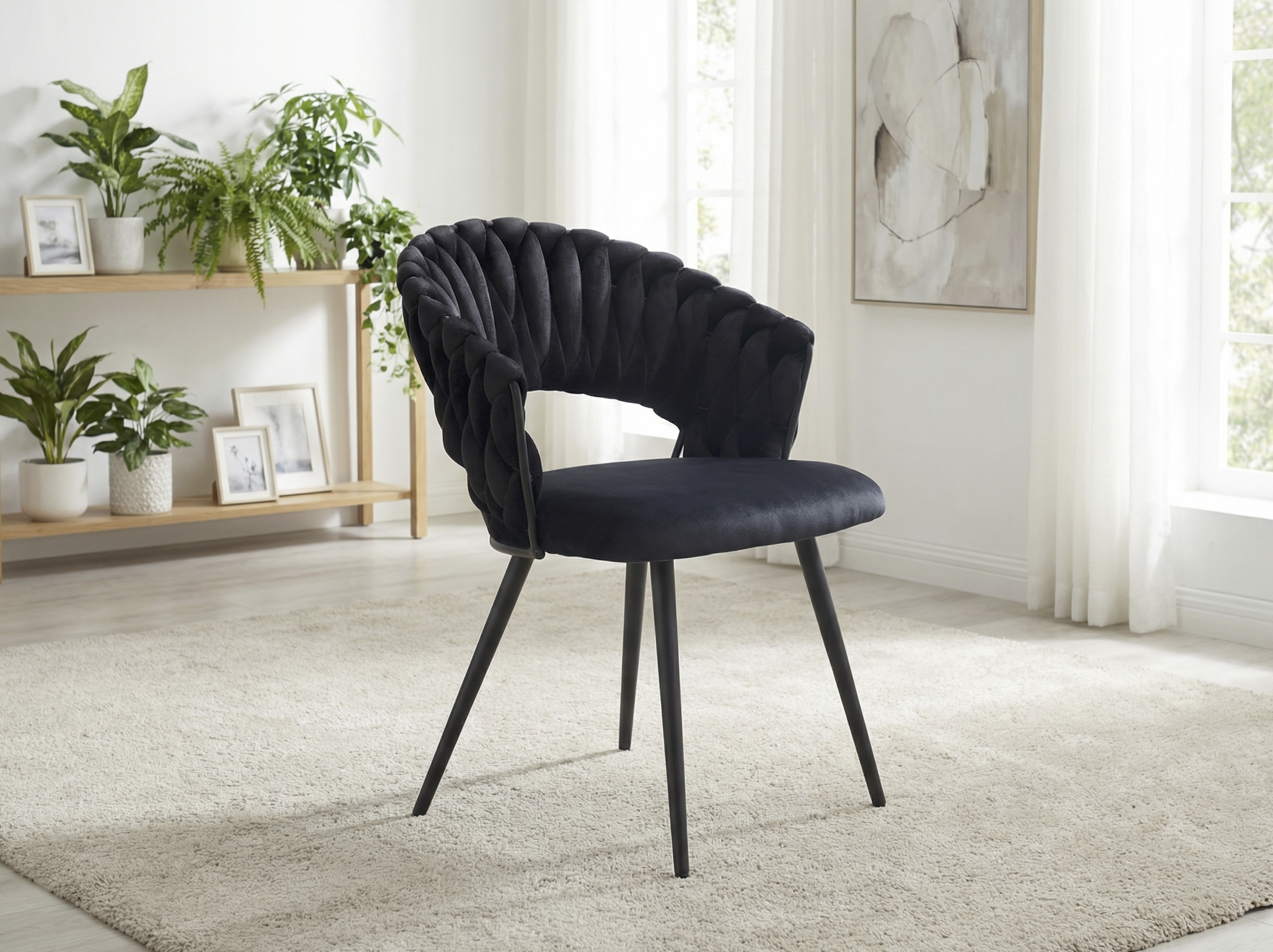 LC Home 4er Set Esszimmerstuhl »Nancy« Flechtoptik Samt schwarz Armlehnstuhl Designerstuhl